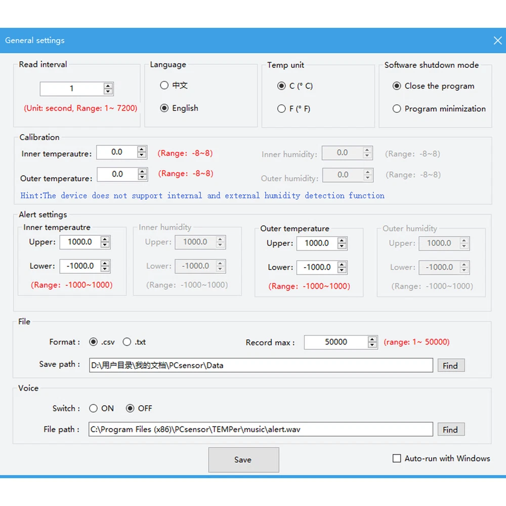 Feature: 1. Temperature Measurement Display: temperature thermometers use two sensors, one inside the device and the other extended to an external probe, which is waterproof. Both sensors can measure temperature simultaneously and display it on the software interface. 2. Hyperbola Display: The real time temperature inside and outside is converted into a hyperbola, and the temperature monitoring is more clear and clear. 3. Log Function: Real time temperature data can be recorded and automatically saved in related files. 4. Warning Setting: Set the warning temperature and start the function. When the temperature reaches the upper limit, the warning sound will play; then when the temperature drops to the lower limit, the warning sound will stop. 5. Wide Range Of Applications: It can be used for indoor and outdoor temperature detection, computer room warehouse environment monitoring, various large shopping malls, pharmacies, air conditioning temperature control monitoring, breeding farms, vegetable greenhouse temperature monitoring and other areas, product and accessories temperature detection. Specification: Item Type: USB Computer Thermometer Material: ABS Probe Specification: TX Temperature Probe 4pin Probe Length: Approx.30mm / 1.2in Line Length: Approx.1m / 1.1yd Temperature Resolution: 0.06℃ Temperature Accuracy: ±2℃ Measuring Temperature: -40℃~+125℃ Compatible System: for Package List: 1 x Thermometer 1 x Dust Hat 1 x Probe 1 x Disk Drive On Nov 17, 2024 at 19:15:45 PST, seller added the following information: On Nov 26, 2024 at 06:42:57 PST, seller added the following information:
