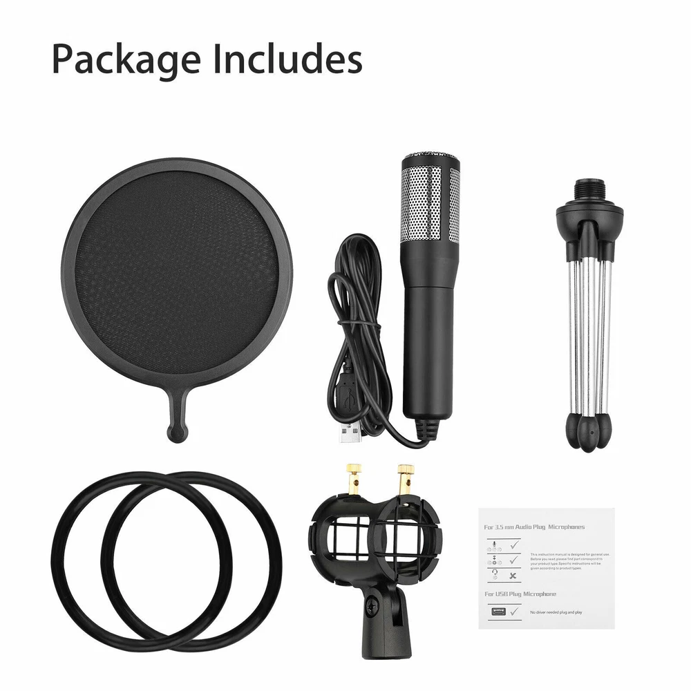 USB Microphone Kit Condenser Desktop Mic for Computer YouTube Gaming Podcasting Condenser Microphone, Professional Studio Recording Mic for Streaming, Podcasting, Singing, Voice-Over, Vocal, Home-Studio, YouTube, Skype, Twitch Features: ♪♪♪ 【Widely Used】Featured with 100 Hz-16000Hz frequency response and maximum 6.56 ft recording distance(adjust as your needs), provides vocal intelligibility and crispness, performed perfectly in reproduces sound. ♪♪♪ 【Anti-Spray Cover】Dual-layer anti-spray cover can prevent air spraying and protect the microphone, so you can clearly and effectively enter and transmit the sound ♪♪♪ 【Plug and Play 】Simply plug it into any available USB port. Compatible with Windows and Mac, you can create your own audio by simply selecting it as input in your computer settings. No need software to install. (recommended used below Windows 10, or the latest version of Windows 10) ♪♪♪ 【Foldable 】Folding Tripod Stand has Ultra-compact design for maximum portability, you can fix the microphone on the desk with the mini flexible head. Can adjust any angle you want. ♪♪♪ 【Non-slip】The tripod with anti-skip silicone rubber foot pads stabilize your microphone and free from tilt. ♪♪♪ 【Perfect for Vocals 】Perfect for live streaming, YouTube video, video conference, broadcasting, podcasting, interviews, voice recording, online chatting, games, Skype, etc. Specifications: Microphone Size(LxWxH): 5 5/8" x 1 1/4" x 1 1/4" (14.2 x 3.1 x 3.1 cm) Cable Length: 5'4" (162 cm) Frequency Range: 100Hz to 16,000Hz Sensitivity: −47±3dB (1.5V, 680KΩ; 0dB=1V/Pa, 1KHz) Output Impedance: Low Impedance (<680Ω) Directivity: Omnidirectional Operation Voltage Range: 1.0V-10V Max. Operation Voltage: 10V Current Consumption: 110dB S/N Ratio: More than 58dB Standard Operation Voltage: 1.5V Decreasing Voltage Characteristic: Within 3dB at 1V Package Included: 1x USB Microphone 1x Microphone Clip 1x Anti-spray Cover 1x Tripod Stand 2x Backup Rubber Bands 1x Manual Q: Does the microphone works with PC or Laptop? A: Yes, This microphone set comes with USB cable , plug and play with the USB cable with your computers, instantly enter your recording. (recommended used below Windows 10, or the latest version of Windows 10) Q: Does the microphone comes with a headphones? A: Sorry, the microphone kit are not included with the studio headphones. Q: Can i use the this microphone outdoor? A: Sorry,can not. 【Service Guarantee】 Thanks for visiting our Store! We try to accurately describe our item to the best of our knowledge, if there is any incorrect, please feel free to let us know via message. We hope you can contact us via message with any issue before you decide to leave neutral or negative feedback or open return request or case. We will reply to you as soon as possible when we see your email at work. Payment Delivery details Terms of sales About us Contact us Payment 1.We only accept PayPal as payment method. 2.The item will be shipped to buyer’s CORRECT and VERIFIED Ebay Address. 3.We are not responsible for the package lost due to incorrect address. 4.Our price do not including any custom or duty, VAT and local tax. 5.Payment must be received within 7 days of winning the auction 6.Please contact us if you need file an extension for any late payment. Delivery details 1.All item are shipped via DHL eCommerce or USPS Frist Class express Service within 2 business days once full payment is settled.If you can't get your items in time,please contact to us first,we will check and solve it for you soon.We will reply your mail within 24 hours normally. Sometimes have a little delay due to the weekend or holiday.If you can't get our mail after 48 hours,please check your spam or contact to us with other mail address or via ebay. 2.We only ship to confirmed Ebay addresses. Your Ebay address MUST MATCH your Shipping address. 3.If you want to change the address please E-mail us right after you pay for the item. 4.SERVICE TRANSIT TIME is provided by the carrier and excludes weekends and holidays. Transit times may vary, particularly during the holiday season. 5.If you have not received your shipment within 30 days from payment, please contact us. We will track the shipment and get back to you as soon as possible with a reply. Our goal is customer satisfaction! Terms of sales 1.Please contact us via eBay Message if you have NOT received item in 30 days , we will check it with post office, and then resend or refund any missing item. 2.i n the unlikely event that your product is faulty in anyway, you must contact us ASAP and then return it within 7 Days of receipt. 3.Return shipping fee should be paid by buyer if wrong item you bought (wrong model or wrong color) and item is defective. We will provide replacement or refund after we received and confirmation. 4.if you need return, please contact and get an address for return from us, then declare your package as “Return”, write your Ebay ID and item number outside About us 1. Dear buyers, we appreciate your business, if you are satisfied with our service, 2. Please leave us a positive feedback and rate the details of the transaction (Detailed Seller Ratings) with a "PERFECT 5 Star. 3. Your recognition will make us more confident to develop business and serve you better. 4. Our goal is to make sure you are a happy buyer and pleasant shopping with us. Please email us before leaving any 1 or 2 ratings, negative feedback or open any dispute. We understand the concerns and frustrations you might have, and will do our endeavor to resolve the issues. Please give us the opportunity to resolve any problem. Contact us 1. We strive for 100% customer satisfaction on every sale we complete. 2. If, for any reason you are not satisfied with your purchase, please contact us before leaving neutral or negative feedback. We will work with you. 3. We are wholesaler and exporter and we have served thousands of customers from all ov