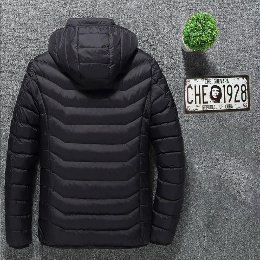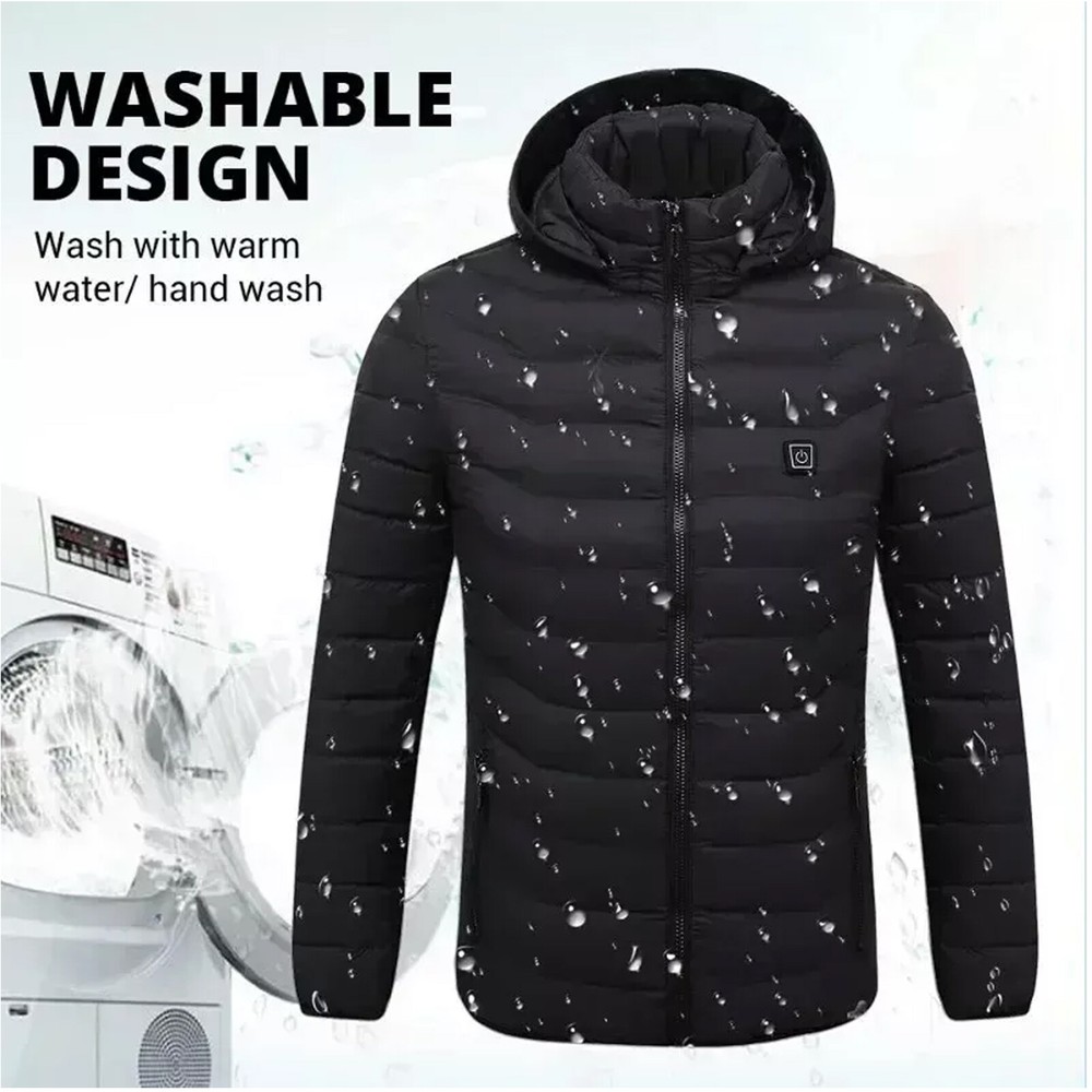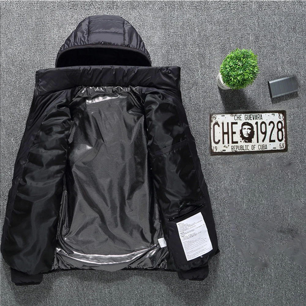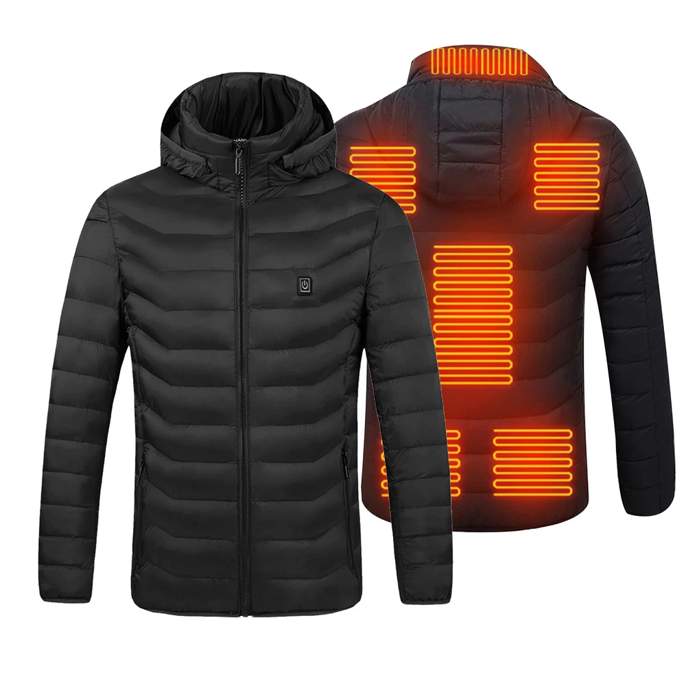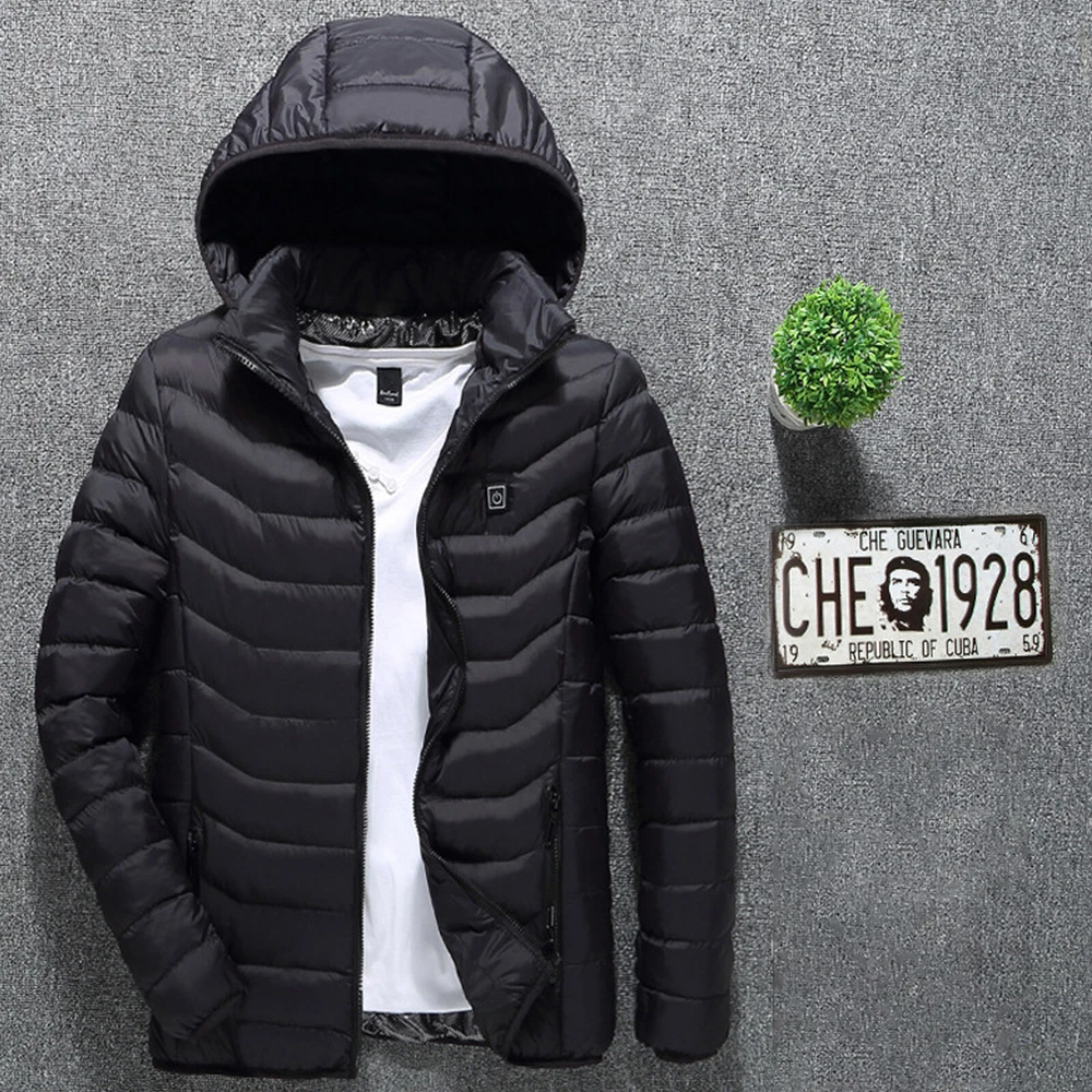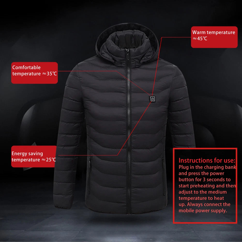 Specifications: Name: Heating down jacket Conditions: brand new Color: black, blue, red Gender: male Material: 95% cotton+5% spandex, carbon fiber yarn Heating temperature: red LED 45-55 ℃, white 35-45 ℃, blue LED 25-35 ℃ Power supply: USB power pack (not included, 10000mah power pack can heat for about 5-7 hours) Size: S, M, L, XL, 2XL, 3XL, 4XL, 5XL, 6XL Season: autumn, winter Package includes: 1 heating down jacket (Note: excluding power bank)