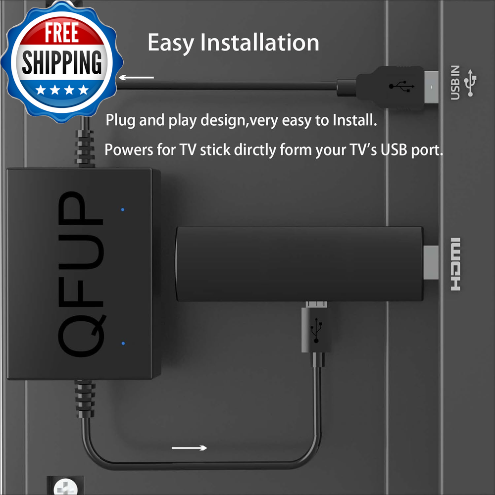 USB Power Cord Power Adapter for Fire TV Stick,Powers Fire Stick Directly Form Your TV'S USB Port(Eliminates the AC Outlet and USB Power Cord) Replacement the USB cable for Fire TV stick:Powers your fire TV Stick directly from your TV’S USB port,makes the fire stick TV run at optimal functionality.Eliminating the need for an external power adapter,AC outlet and hanging cable,gives your a clean install. Compatible with all HDMI devices that support micro USB power streaming,such as Roku Streaming Stick,all Fire TV Stick Mode,TV fire Stick,Chromecast Streaming Stick and other Smart Sticks. Thanks for the advanced circuit chip,not only effectively improve the conversion rate, stable discharge voltage, and also can provide multiple circuit protection. Super easy to Install:A plug and play design.Just plug the micro USB cable into your Smart TV fire stick and than plug the USB connector into your TV’S USB port.Solve the problems of "Insufficient power'' errors,gives enough power for straming sticks. The charger has a built-in battery to keep the TV Stick alwasy has power and maintains proper current going to your device.But it only provide power to TV stick when the TV is turned on. Note:For First installation, the battery is completely discharged,willl not immediately start working,please charge the device for ten minutes before use. Packing List:1* Power Stabilizer (The Fire Stick Don't including ) Product Description Powers your streaming TV stick directly from your TV’S USB port,Eliminating the need for AC outlet. Support 4K HDR Video Streaming The Amazon TV sticks require at least 1A of power to be properly powered.QFUP Super power stabilizer can provide enough power to an AmazonTV for a smooth experience.To help you to solve the power consumption of 4K HDR Video. Multiple Protection System Equipped with multiple protection system against Over-Current, Over-voltage, Over-temperature, Short-circuit, etc. To keep you and your Amazon fire TV safe. Compatible with all HDMI devices(Support USB power ) Compatible with all HDMI devices that support micro USB power streaming,Works for Amazon TV Stick Models,TV Stick Lite, TV Stick, Fire TV Stick 4K, TV Ultra 4K, Roku Streaming Stick, Chromecast Streaming Stick and other Smart Sticks. Note:For First installation,when TV address "insufficient power",please wait for ten minutes to charge this device before using it. Easy to Install:A plug and play design. Just plug the micro USB cable into your Fire TV stick and than plug the USB connector into your TV’S USB port Compatibility Model TV Stick TV Stick 4K TV Ultra 4K TV Stick Lite Roku Streaming Stick Chromecast Streaming Stick All USB powered Streaming Other Smart Sticks(Support Micro USB) Shipping Fast shipping is very important for us. Our standard US shipping service is FREE. Your order will be shipped within 2-3 business days upon full payment received. Your order will be delivered within 2-3 business days after the handling time. We only ship to the confirmed PayPal address. We reserve the right to cancel any order for any reason at any time. We are not responsible for undeliverable addresses. Returns and payment We offer a 30 days return policy from checkout winning date. We allow only PayPal as payment method FeedBack Your feedback very important to us, after you get your package and you are satisfied with our service please leave us positive feedback If you have any problem with your order / any questions please before leave any type of feedback For any questions, using eBay contact system Please visit our eBay store to check out other items for sale! Thank you for shopping at our store.
