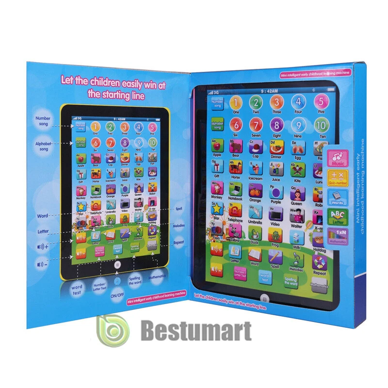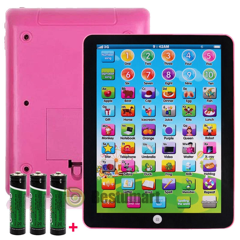 Educational Learning Toys for Kids 2 3 4 5 6 7 8 Year Old Girl Boy Gift Chrismas BUY WITH CONFIDENCE ↓ ↓ ↓ √ 100% New & Excellent Quality √ Strictly QC, Each set was fully tested before shipping √ Free 1-3 Days Shipping From NJ,USA.Ship within 24 hours. √ Offer delivery with Tracking Number √ Free Return, Seller Pay!! √ Lifetime Warranty Blue/Pink Learning Tablet Features: 🎶 Made of non-toxic environmental ABS plastic. 🥇 Simple function,featuring with Volume +, Volume -, just turn on ON/OFF function,then gentle press, easy for children to operate 🎁 No LED which is harm to kids' eyes. ✨ Learning and playing content:Provides funny ways for children to learn 26 A-Z Alphabet Letters, Words Learning and Spelling, Color Learning, Animal Learning, Fruit Learning,Food * * Learning, Alphabest song and Number song. 🌸 Developing baby's emotion,hearing,grip,sensory,hand-eye coordination,visual and other abilities 🎶 Great gift for baby toddlers boys and girls for Children's Day, Birthday, Christmas Day, New Year. 🥇 Lightweight and portable. Attention: 1.After placed the batteries, Press the Home Button it will be turned ON/OFF,then start your learning by press other Icon. 2.NOT Real iPad,Pressed only!!! No slide! 3.Not with LCD Touch Screen, No Wi-Fi, It's a learning type mini ipad to teach babies and kids in a gaming type. 4.Please note it says on package not suitable for children under 3 years, actually it is suitable for kids age 1-3 playing under adult supervision. Specifications: 🌸 Materials:Environmental ABS 🎁 Power:3 x AA batteries ( included) 🎶 Color: Blue/ Pink 🥇 Size: 18.4*14.3*1.8cm Package includes: 1x Mini Learning iPad Toy 3 x AA batteries Learning Cellphone Features: 🎯Boasts 8 different modes and plenty of sound effects. 🏅The Y Phone feeds curiosity to learn through touch, sound and sight. 🏰The Toy Phone has the same appearance specifications as the iPhone 🏆Rechargeable with Micro USB (cord not included). On/off switch on the bottom. 🍬Lights flash in multi colors around the edges when a button is pressed, very visually stimulating. Specifications: Recommended Age Range: 3+ Feature: 8 Large Function Gender: Boy & Girl Theme: Role Play Cell Phone Style: Educational Toy, Musical Toy Material: Plastic Plastic Type: ABS Category: Phone Product size: 15.5*9*1.3cm /6.1*3.5*0.5inch Color: Black Language: English Charging : Android USB Connect (not included) Item name: Children touching screen English learning talking y-phone toy. Package included: 1 x Toy Cellphone Payment Shipping Return Policy About Us Contact Us Payment *** We accept Paypal,Visa,Credit Card, e-Check . etc. Shipping Below is the approximate delivery time to different countries (Just estimated) *** 1-3 business days to buyer in USA via Expedited shipping *** 1-5 business days to buyer in USA via USPS Standard Shipping *** 5-12 business days to buyer in CANADA *** 8-15 business days to buyer in EUROPE Country (Depends on Custom) Return Policy *** Free Return, we accept 60 days Money Back or Exchange Guarantee for All Items. About Us Customer Comes First !! Contact Us For any questions or problems, please contact us in the first monent, we will always be here to help you solve the problem.(From Monday to Saturday, not for Holidays).
