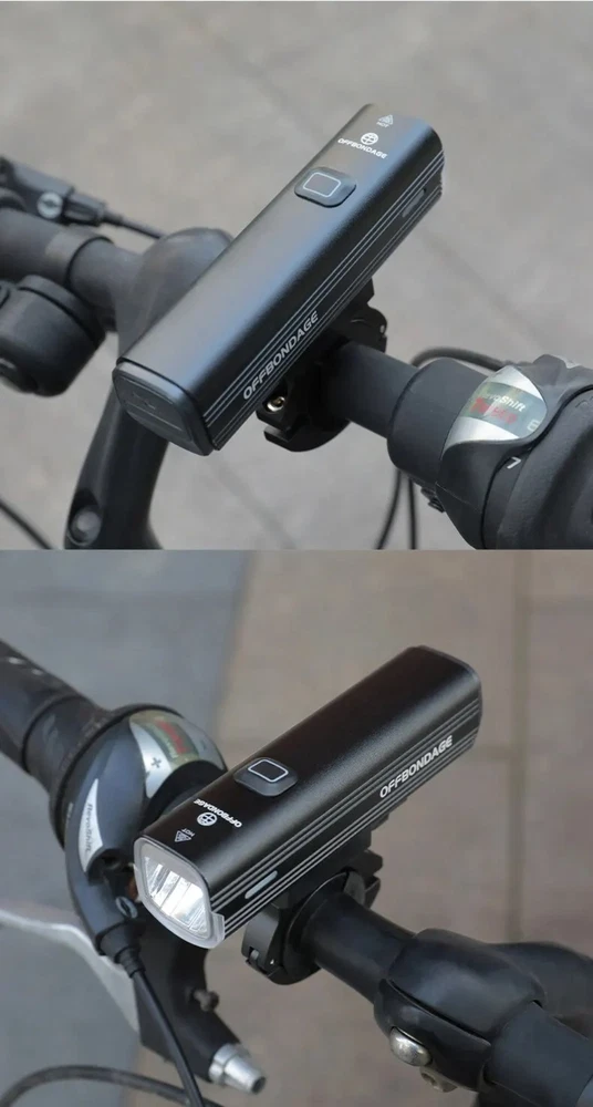 • 1000Lumen Brightness : The OFFBONDAGE Bicycle Light emits a powerful 1000Lumen beam, making it perfect for night rides and ensuring maximum visibility. • USB Charging : With its handlebar USB charging port, this bike light can be easily charged on the go, eliminating the need for complicated wiring or batteries. • Highlight and Power Bank Functionality : This product not only serves as a bike light but also doubles as a power bank, making it a versatile and practical accessory for any cyclist. • CE Certification : The OFFBONDAGE Bicycle Light is certified by CE, ensuring that it meets the highest safety standards and is safe to use while cycling. Product detail Fire: OFF BONDAGE Model: HR3-1000 Material: Aluminum Alloy Mode: 5 Modes Super Bright\\\ / High\\\ / Middle / Low\\ / Flash Waterproof: Daily Waterproof Lumen: About 1000Lumen Range: About 200M Battery: About 4500 mAh Charging Time: About 3-5 hrs Light Shows NOTE About Charging: 1.Please use the charging cable included in the package to charge, otherwise it may cause damage to the lights. 2.It can be used as a power bank ,but you need to prepare a conversion connector yourself