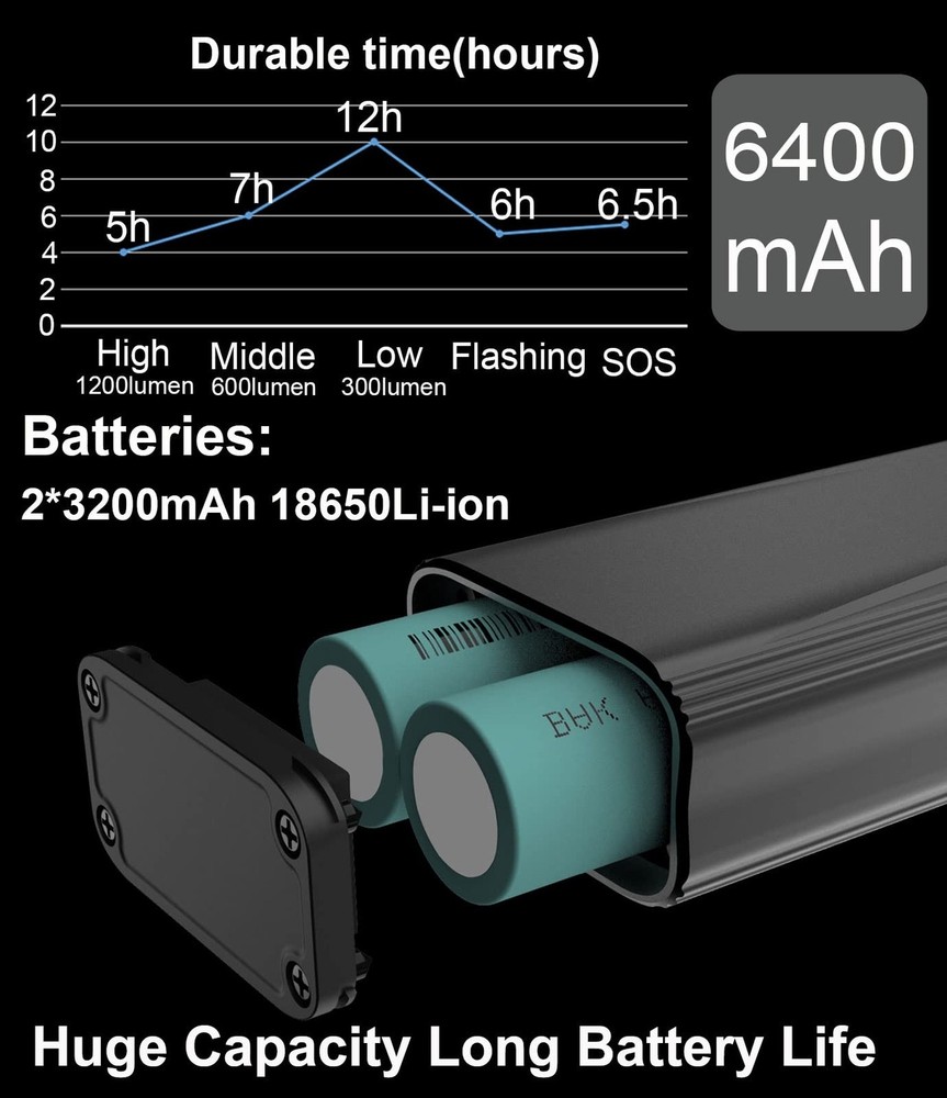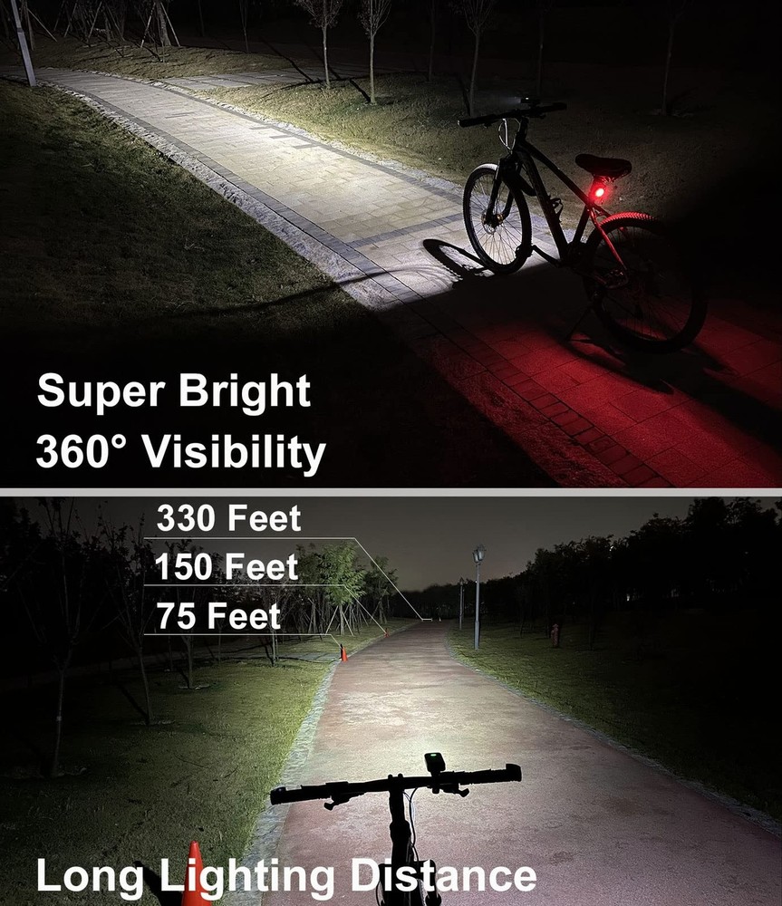 Bike Lights for Night Riding,6400 mAh Bicycle Light Front and Rear USB Rechargeable Bike Headlight and Tail Light Set,Super Bright 1200 Lumen Led Safety Light Accessories for Road and MTB Product Details Color: black Brand: EILIOC Material: Aluminum Power Source: Battery Powered Water Resistance Level: Water Resistant Item Weight: 0.2 Kilograms Mounting Type: Handlebar Mount Number of settings: 5 Brightness: 1200 Lumen Auto Part Position: Front Color: black Brand: EILIOC Material: Aluminum Power Source: Battery Powered Water Resistance Level: Water Resistant Item Weight: 0.2 Kilograms Mounting Type: Handlebar Mount Number of settings: 5 Brightness: 1200 Lumen Auto Part Position: Front International Protection Rating: IPX5 Manufacturer: iligo UPC: 708311538907 Item Package Dimensions L x W x H: 5.47 x 4.13 x 1.89 inches Package Weight: 0.28 Kilograms Item Dimensions LxWxH: 3.9 x 1.78 x 0.98 inches Brand Name: EILIOC Part Number: eilioc Date First Available: November 25, 2019 SUPER BRIGHT BIKE LIGHT SET-1200 LUMEN headlight shines a powerful beam far and wide 180over roads and trails making it easy to see and be seen! The wide beam make it visible from the sides also,cars can see you if they approach from your side at an intersection.Free Tail light included.The bike light set make your bicycle 360ovisibility,keep in safety all the time.GET IT NOW! BUILT IN HIGH CAPACITY BATTERY- The headlight built in high capacity 6400 mAh long lasting battery,can work 5 hours in high mode,7 hours in Middle mode,and 12 hours in low mode.Long runtime ensures that you reach your destination safely on dark nights,avoiding the battery run out and effect your safety and travel.Both USB Rechargeable Bike light front and back can charge from mobile phone charger,computer,power bank or any device with a USB port,never waste your money on the batteries again. EASY INSTALLATION AND 360RATATION SWIVEL STRONG MOUNT-Clip design,just slide on or remove the lights in seconds without tools.When you lock up your bike outside,You can easily remove it for charging and theft prevention.Rotate the USB Rechargeable bike light to shine any direction you want. The holder is steady and clamped to handlebar firmly.The light clicked to the base firmly.You put it on and don't need to worry about falling down. WATERPROOF AND USB POWER OUTPUT-Water resistant rated to IPX5 - Protected against small rain, Splash water,light up your road in all conditions of weather!The lamp power supply can be used as a power source.If your mobile phone has no power during the riding,you can use it emergency charging the phone.