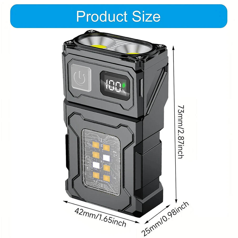 Electric Callus Remover Foot Sander Rough Feet Rechargeable Dead Skin Tools USA 11.98 USD 12.99 USD Free shipping 8% off Super Bright 990000LM Rechargeable LED Headlamp Head Light Torch Flashlight Lamp 12.98 USD Free shipping 19"Men Laptop Backpack Bag Anti-Theft Extra Large Travel School Waterproof Bag 25.59 USD Free shipping Hair Curling iron Short And Long Hair Ceramic Coating Two-Temperature Control 13.99 USD 0.99 USD Cordless Massage Belt Electric Heated with Back Support Waist Vibration Massager 29.59 USD Free shipping Concealed Carry Fanny Holster Tactical Military Pistol Waist Pouch Gun Bag 12.33 USD 12.98 USD Free shipping 5% off Rechargeable Spotlight,Spot Lights Hand Held Large Flashlight 1000,000 Lumens 27.98 USD 2.66 USD Solar Portable LED Flashlight USB Rechargeable Camping Tent Light Lantern Lamps 10.99 USD Free shipping Portable Plasma Pen Mole Removal Dark Spot Remover Skin Wart Tag Tattoo Beauty 16.5 USD Free shipping 36"in Tactical For Gun Bag Gun Padded Soft Case Carbine Hunting Black Backpack 24.29 USD 26.99 USD 0.99 USD 10% off 50PCS GOLF Shoe Spikes Replacement Studs Soft Fast Twist Cleat For Footjoy USA 10.99 USD 0.99 USD TWS Audifonos inalambricos 5.3 Bluetooth Auriculares For iPhone Samsung Android 9.99 USD Free shipping Solar Power 300W LED Torch USB Rechargeable Light Outdoor Camping Tent Lamp Bulb 12.99 USD Free shipping Tactical Helmet Cover for Fast MH PJ BJ Helmet For Airsoft Paintball Helmet Cove 4.99 USD Free shipping Bicycle Motorcycle Mount Invisible Selfie Stick For Gopro Insta360 X3 X4 Max 20.99 USD Free shipping 1000 Lumens Premium Rechargeable LED Flashlight Stainless Steel Pen Light 6.99 USD Free shipping SAFE & SECURE SHOPPING 100% SATISFACTION GUARANTEED FAST SHIPPING Store Categories Store Categories Other Auto & motorcycle parts Headlamp & Flashlight Camping & Hiking Hunting Equipment Cycling Equipment 3C Tools Promotion Hot Sales!!! Cars & Motorcycle Accessories Electronic Product Car Light You may also like USB Rechargeable Flashlight Portable Pocket LED Magnetic Mini Torch Work Light Product Description Description: High-Brightness LED Light: Equipped with high-brightness LED bulbs,provides bright, reliable illumination for detailed tasks and emergency situations. Multiple Lighting Functions: The flashlight is equipped with red and blue warning lights that can be set to steady or alternating flash modes, enhancing visibility in emergencies. Features a high-frequency strobe function, ideal for emergency signaling or self-protection. Magnetic Base & Stainless Steel Clip: The flashlight has a magnetic base for easy attachment to metal surfaces and a stainless steel clip for flexible carrying options on clothing, freeing up your hands for various tasks. Battery Display: Experience the convenience of a digital battery display that takes the guesswork out of usage time, making this flashlight essential tool for all your outdoor and emergencies lighting needs. USB-C Fast Charging & Waterproof: Recharge quickly with a USB-C port, ensuring you're always ready for any situation.With an IPX4 waterproof rating and anti-fall height of 1.3 meters, this flashlight is built to withstand the elements. Wide Application: Ideal for night work, camping, fishing, hiking, car repairs, or as an emergency light during power outages. Specifications: Name: Strong Light Work Light Material: ABS Size: 73×42×25mm (2.87×1.65×0.98inch) Charging: USB-C fast charging Charge Time: 3-hour Working Hours: 3-24 hours Waterproof Rating: IPX4 Anti-Fall Height: 1.3 meters Light Modes: Strong Light, Weak Light, Flashing, Red Light, Flashing Red & Blue Package Included: 1×Strong Light Work Light 1×USB Cable Note: 1. Please allow 0~1 inch error due to manual measurement. Thanks for your understanding. 2. Monitors are not calibrated same, item color displayed in photos may be showing slightly different from the real object. Please take the real one as standard. Payment Shipping Returns Contact Us Payment 1. This is the payment method we can accept: Paypal 2. You can checkout and pay immediately after the auction ends or you complete the purchases. If you need an eBay invoice sent to you by Email, please contact us before making payments. 3. Once the checkout is completed, you will not be able to include any additional purchases. We start to process and fulfill your order once payment is received. New purchases after the checkout will be processed separately. 4. Payments are expected within 4 days after the order is confirmed. Unpaid item (UPI) strike may be filed with eBay upon non-receipt of payment. Shipping 1. How much is the shipping & handling (S&H)? Our shipping and handling charges are clearly stated in the Shipping and Payments section of the item page, and we provide Free Shipping for most items. 2. For multiple purchases, the combine shipping discount will be automatically calculated when you check out and pay all of your purchases together. Items checked out separately may not be combined and the combine shipping discount will not be offered automatically. 3. Please make sure the correct Ship-To address is entered before checking out. Once the payment is completed, you may not be able to change the shipping address. We shall not be held responsible for any wrong or undeliverable addresses. 4. We usually ship within 1-2 business days of receiving cleared payment. Returns 1. We put buyer's satisfaction at top priority. If you're not pleased with your purchases, we'll be happy to make an exchange or refund the item total price less Shipping and Handling (S&H) charges within 30 days of your purchases. 2. For any Exchange, Refund or Return, the item must be in its original condition, including the box, packaging, and all the accessories or gifts. 3. We'll provide prepaid return shipping label if the return is a result of our error. Postage reimbursement is offered only on standard mails, and it needs to be approved by our staff prior to returning. 4. Please allow up to 7 bu