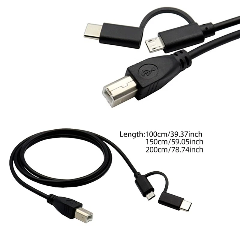 Features: Type C/Micro to USB B printer data cable, different length are avaliable to choose. Type C/Micro USB port for connecting phones, laptops, tablets, USB-B port for connecting printers, Digital Piano MIDI Controller, Small size, convenient storage, and portable to carry and easy to use. Made from quality material, this cable is durable and ensures long lasting use. After connecting the phones to this adapter, you can use a USB-B printer, USB-B no driver sound card, MIDI keyboard, microphone, electric piano, Specifications: Material: Plastic Color: Black Length: 1m, 1.5m, 2m(optional) Size: Approx.1m/3.28ft, 1.5m/4.92ft, 2m/6.56ft Input: Type C or Micro USB Output: USB-B Package Includes: 1 Piece Type C/Micro USB to USB-B Printer Data Cable note: Please allow 1-2cm errors due to manual measurement. Please allow for slight color differences due to different display resolution.