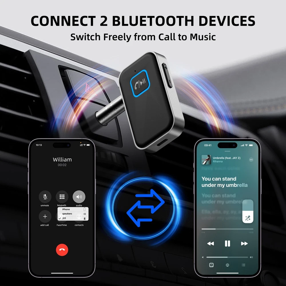 Bluetooth 5.0 USB Wireless Transmitter Receiver 2in1 Audio Adapter 3.5mm Aux Car Feature: √ 【 Intelligent Noise Reduction Tech 】Adopts the latest CVC8.0 Noise Cancellation and Digital Signal Processor (DSP) technologies, which can eliminate echo and block out intrusive background noise (such as wind, traffic, or crowds). √ 【 Low Delay 】 Low latency for high-fidelity stereo sound, content transmission without delays in transmitter mode. √ 【 2 in 1 Bluetooth Receiver/Transmitter 】 The portable adapter that can be used as a transmitter or receiver at the same time. -- [ Receiver Mode ] Bluetooth Receiver change the traditional speakers into Bluetooth-enabled speakers -- [ Transmitter Mode ] Bluetooth Transmitter is specially designed for the Audio Devices (such as MP3, MP4, TV, etc.) without Bluetooth function. √ 【 Hands-free Calling & Navigation 】A built-in microphone and one “MFB” button to answer / redial / hang up / reject calls, help you make hands-free calls. √ 【 Dual Connection 】The portable Bluetooth stereo adapter can be paired with 2 devices at the same time. √ 【 Up to 16 Hours of Battery Life 】The working time of this aux Bluetooth adapter is up to 16 hours when making calls or playing music. √ 【 Portable Size 】T he compact bluetooth adapter is small, lightweight and easy to carry. √ 【 Elbow Design 】 Does not take up space. √ 【 Plug and Play 】 No driver required, easy to use. Works with the device which has 3.5mm jacks. √ 【 Type-C P ower Supply 】 Charge it on the Micro USB port and connect it to the device via the audio adapter while using. I t takes only 2.5 hours to fully charge the device. Specification: Type: Bluetooth Receiver Transmitter Colo: Black Interface: tType-C / 3.5mm Jack Transmission Rate: 3 (Mbps) Effective Working Radius: 10 (m) / 33ft Bluetooth Standard: v5.0 Working Frequency: 200 (MHz) Working Time: 2.5 Hours (Fully Charged) Package Included: 1* Bluetooth receiver 1* 3.5mm adapter 1* Type-C charging cable 1* Manual On Jun 16, 2024 at 20:24:53 PDT, seller added the following information: