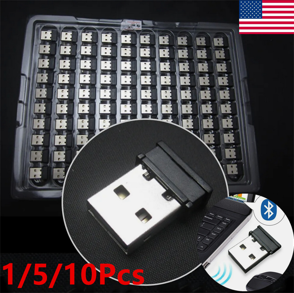 USB Wireless Dongle Receiver Adapter for Universal Mouse Keyboard Connect Feature: Brand new and high quality Color:Black,White Material:alloy ,plastic Product size: 1.7×1.2cm Interface type: USB Package Include: 1/5/10 x USB Receiver for Wireless Gaming Mouse Note: 1. Some pictures look bigger, please refer to the exact item size. 2. Please note that due to lighting effects, monitor's brightness and contrast settings, the color of the products may vary slightly between our photos and the item actually received. 3. We thank you for your understanding.