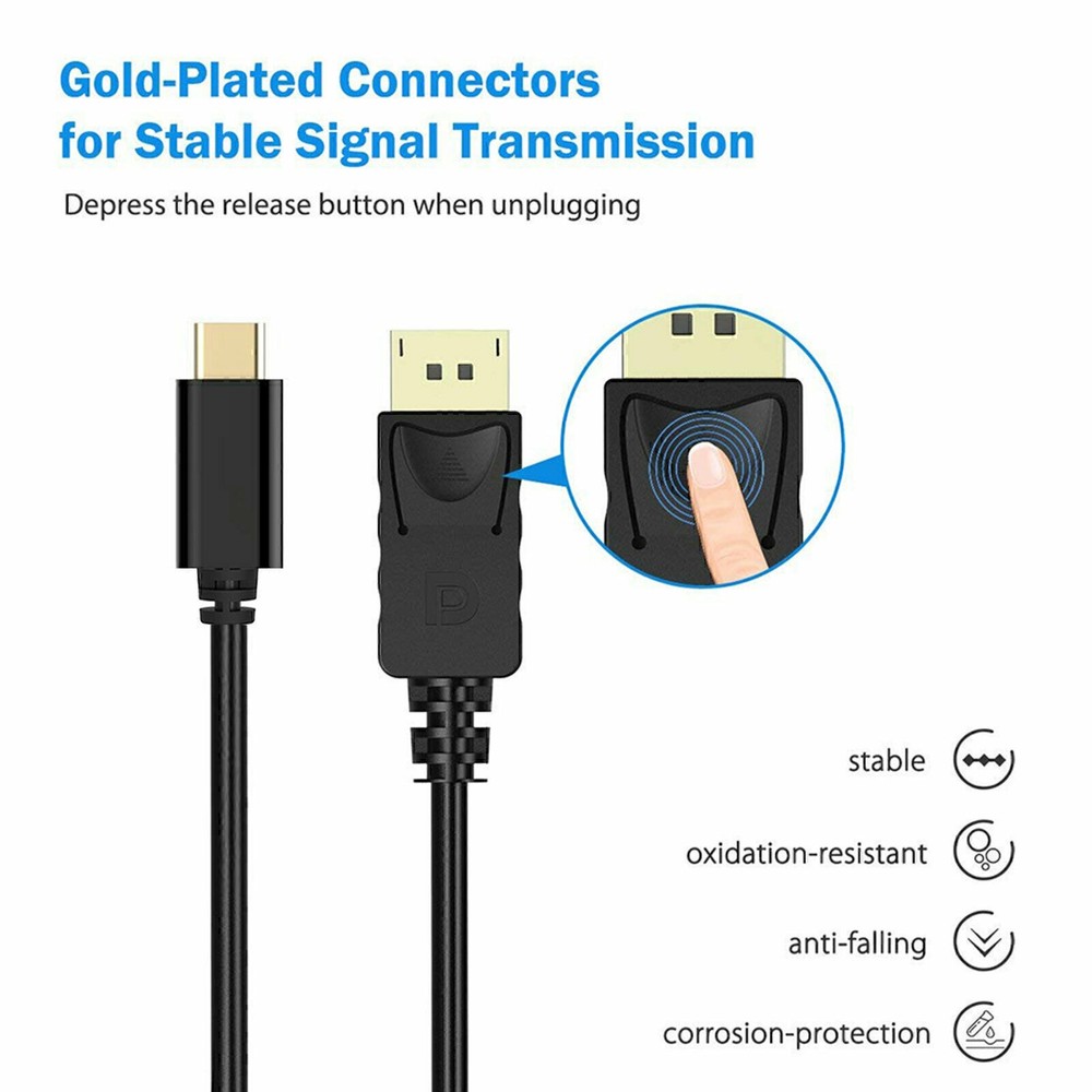 Product Description If you have any questions, please contact customer service first, do not open disputes easily, thank you! Features: Plug and play, the cable allows you to directly connect a USB-C computer to a DP-enabled monitors or televisions, transmits high definition audio and video from your computer to a monitor. Supports resolution up to 4K*2K (3840*2160) at 60Hz, delivering clear video image and authentic audio, by 60Hz refresh rates, never worry about blur, distortion and delay. Backward compatible with 1080p. No installation extends drivers or power required; Portable USB C adapter is lightweight to carry in your laptop bag when traveling; Low-profile and reversible USB Type C connector clicks into place for a snug and secure connection. Gold plated connectors provide highest connectivity, stable transmission. Specifications: Type: USB-C to DisplayPort Cable Support Resolution: Up to 4K*2K(3840*2160)@60Hz Length: 6FT/1.8M Color: Black Package include: 1 x USB-C to DisplayPort Cable About Us We accept all payments authorized by eBay. About Us We accept all payments authorized by eBay. powered by