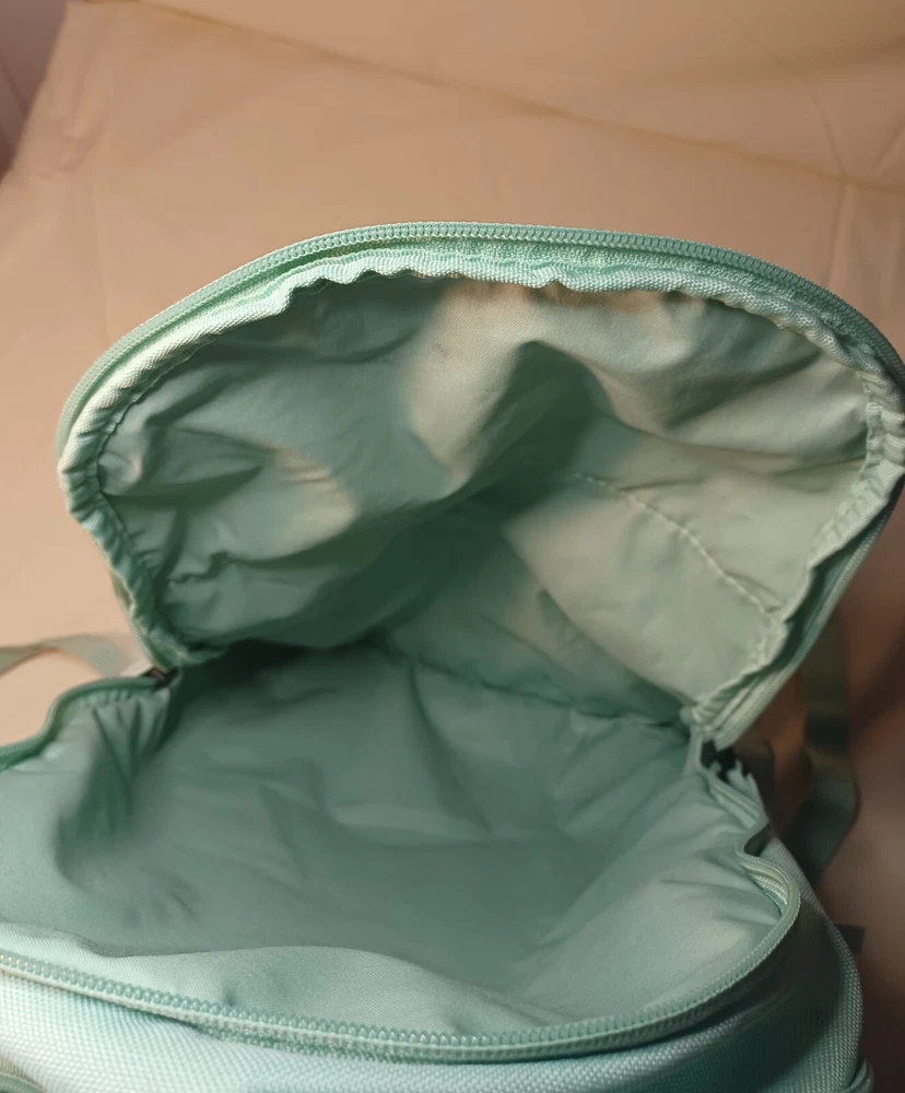 This Nike backpack is the perfect accessory for any sports enthusiast or school aged kid. The solid green color and classic design make it a versatile piece. The backpack features an adjustable strap and zip closure for secure and comfortable wear. With its spacious interior and multiple pockets, this backpack is perfect for carrying all your essentials on the go. Whether you're heading to the gym, running errands, or exploring the city, this Nike backpack is a stylish and practical choice. The product line is Nike 72 and it's made of durable polyester material. ATTENTION: This backpack has several small stains. Please look over the pictures before purchasing. All zippers are in working condition.