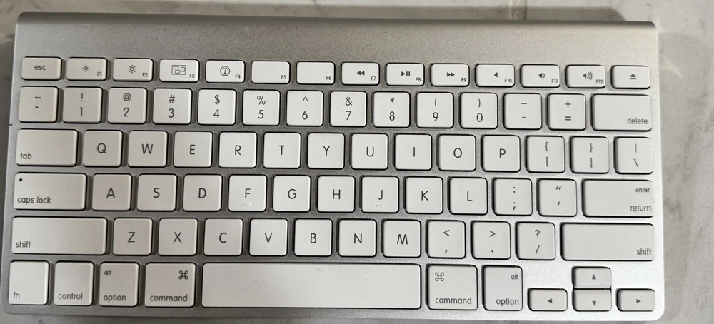 Looking for a sleek and functional keyboard that complements your Apple devices? Look no further than this original Apple A1314 Wireless Bluetooth Slim Keyboard. With its white, slim profile design and QWERTY (Standard) keyboard layout, this keyboard is perfect for typing comfortably and efficiently. Connectable via wireless and Bluetooth, this Apple Slim Profile keyboard is ideal for use with a variety of Apple devices, including Mac computers and iOS devices. It features a Danish keyboard language and is in excellent working condition. Whether you're a professional or a student, this keyboard is sure to meet your typing needs.