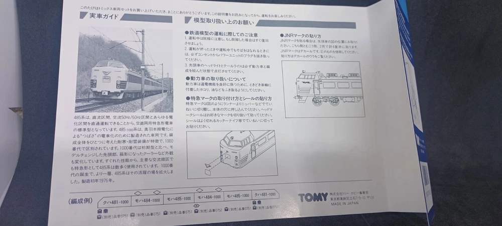 Item gauge N scale manufacturer Tomix 7 car set 485 type limited express Raicyo,Hakucyo,Hokuetsu area as train name Raicyo Osaka-Kanazawa-Niigata station as train name Hakucyo Osaka-Kanazawa-Niigata-Akita-Aomori station,as train name Hokuetsu Fukui-Kanazawa-Niigata station times around 1964-2017 Condition USED packed in original case inner and outer package are clean All cars are clean condition with simple instruction manua l behind package with destination sticker with working motor and headlight Shipping rate Japan Post AIR mail with tracking 29 USD about 1 to 2 weeks shipping rate is half for each multiple purchase Note Import tax might be applied when buyer receive parcel Buyer needs to prepare for power unit to transmit electricity to motor to move train beforehand I sometimes might be late for dispatching item a little due to my business trip. Buyer need to dispatch return item at buyers expense within less than 1 week after recieving item . Shipping rate is not refundable.