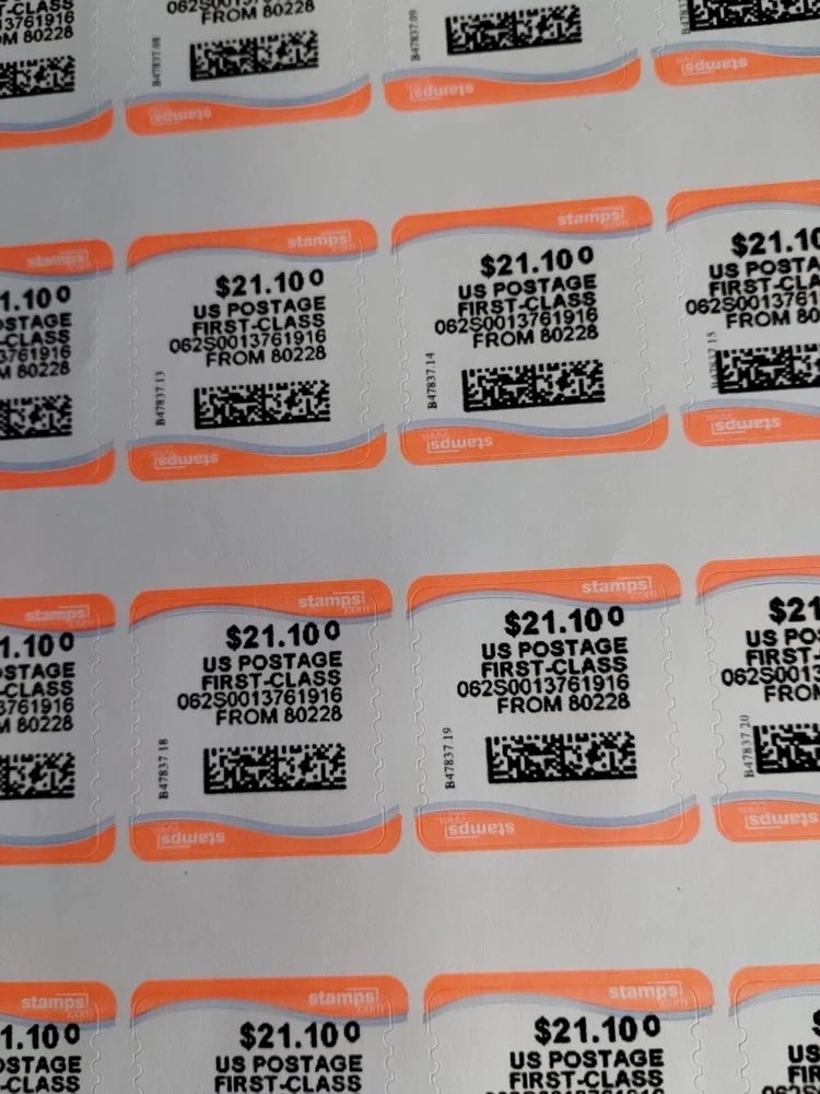 This limited-time sale offers USPS $21.10 postage stamps that are perfect for anyone who needs to send a package. With a face value of $21.10 per stamp with a total value of $527.50 (25 stamps per sheet) these stamps are a great deal. The stamps are certified by USPS and are of high quality, ensuring that they will last a long time and they NEVER EXPIRE. The stamps are from the United States and are perfect for anyone who wants to send mail or packages at an amazing discount! This is my Grand Re-opening Sale, where you can pay only 25% of the face value. This is a great opportunity to get your hands on these stamps, and DON'T FORGET FREE PRIORITY EXPRESS MAIL SHIPPING!