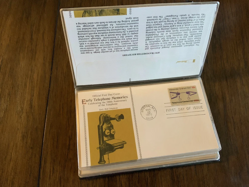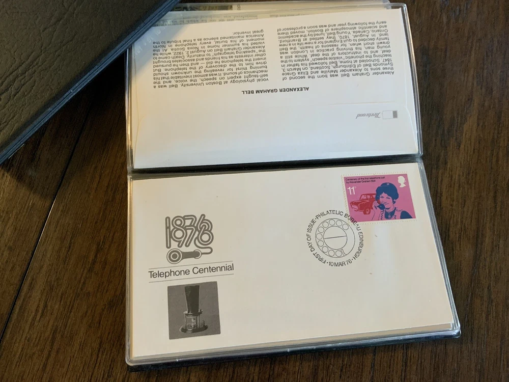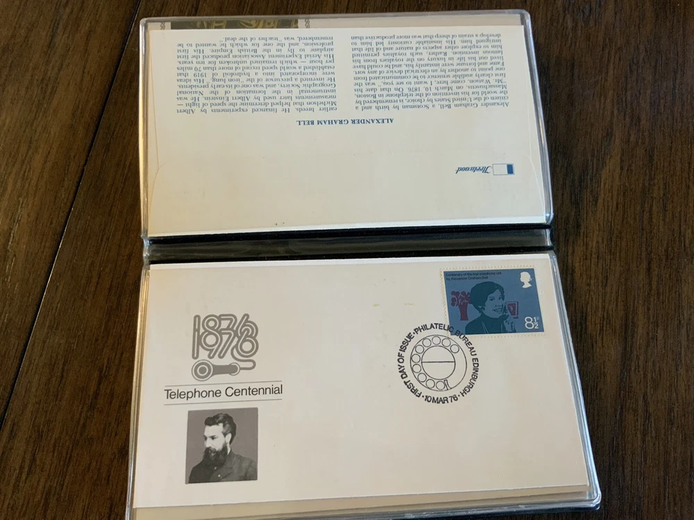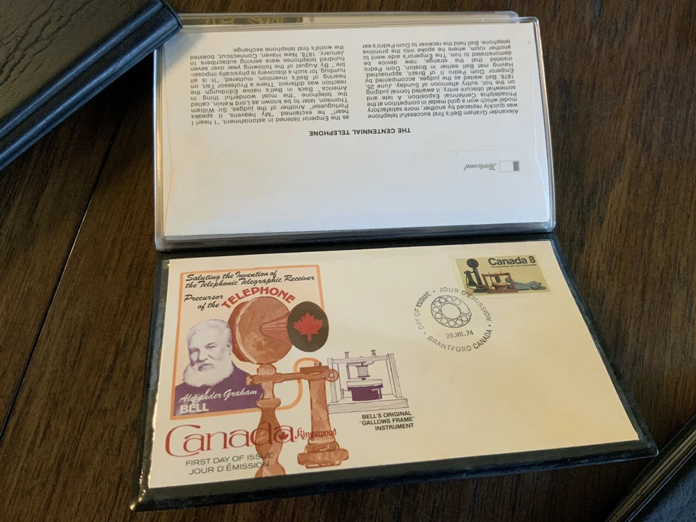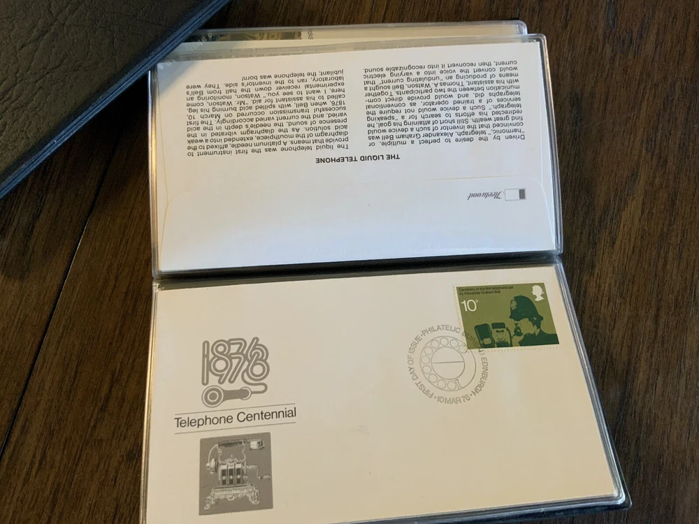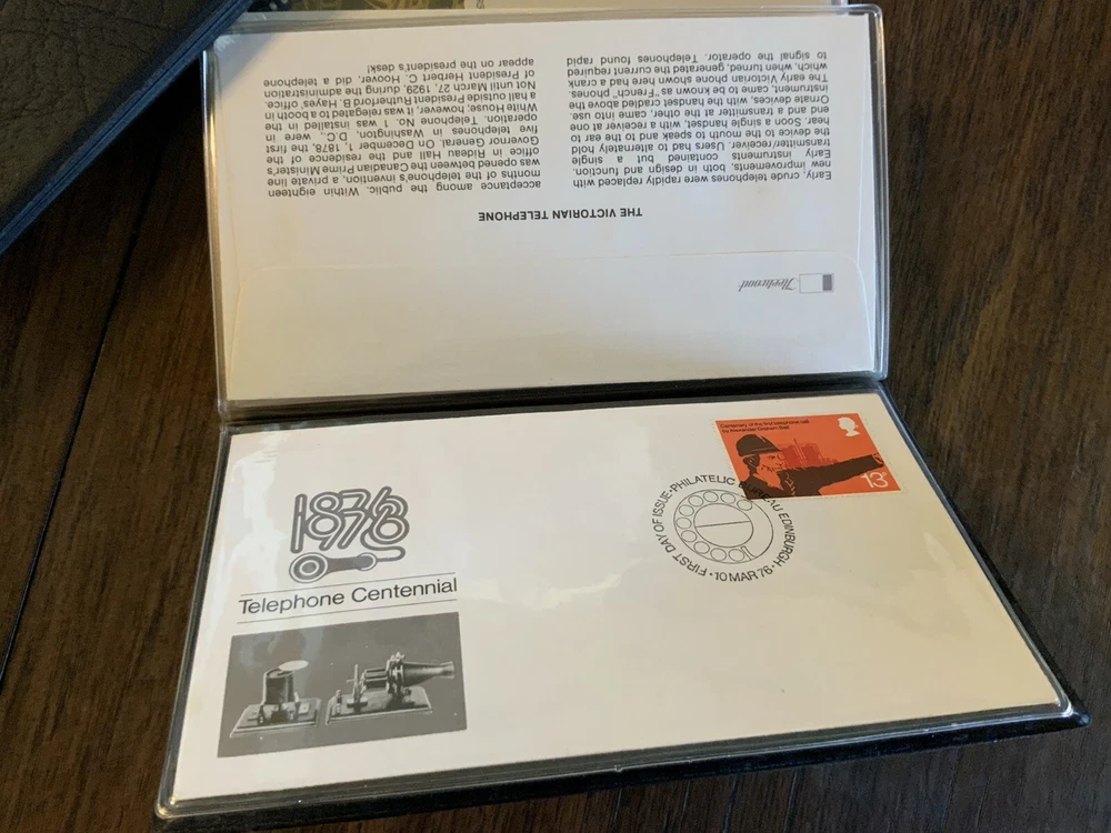 Celebrate the 100th anniversary of the telephone with this vinyl folder containing 9 First Day Covers (FDCs) from the US and UK and canada. The covers feature beautiful designs and postmarks commemorating the milestone in communication history. The set is pre-owned but in very fine condition, perfect for any stamp collector or history enthusiast. I can combine shipping.
