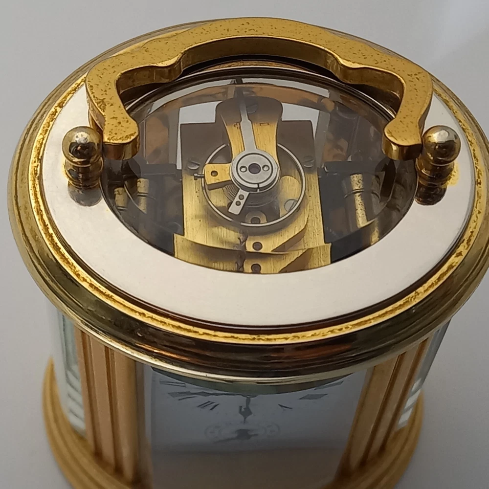 UTI L'EPEE 1839 For sale UTI oval French miniature carriage alarm 8-day clock, white dial, with black scotia hands, movement 11 jewels, Made in France signed "L'Epee 1839". B ell under the base. Measurements: Height 8 cm without the handle, Depth 5 cm Width 6.2 cm. The gold tone case is in very good condition. The original beveled glass has no scratches. The white dial with black hands is also in great shape. The watch works and gives very good time. The watch comes with its original double-headed key. As for the Alarm, it requires some maintenance. I'm not sure what the exact problem is, but when you try to wind it, it starts working on its own. This indicates that it requires repair. Being sold as is as found condition. We combine shipping. Terms & Conditions We are dealing with pre-owned/ used/ vintage timepieces. Our items are 100% authentic. All photos are taken by us. Buyers will receive the same item that is shown in the photos. We provide a full description and many photos of the item and we expect you to contact us for extra details. Shipping We ship international expedited shipping via DHL with tracking. Phone number is required by DHL for shipping. We ship from Lebanon. We combine shipping. We are not affiliated in any way with any of the presented brands. Buyer will have to pay any custom fees for releasing the item in their own country, this will effect delivery times. Check the custom fees in your country before you buy.