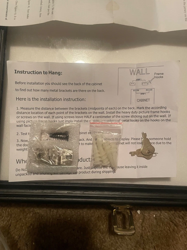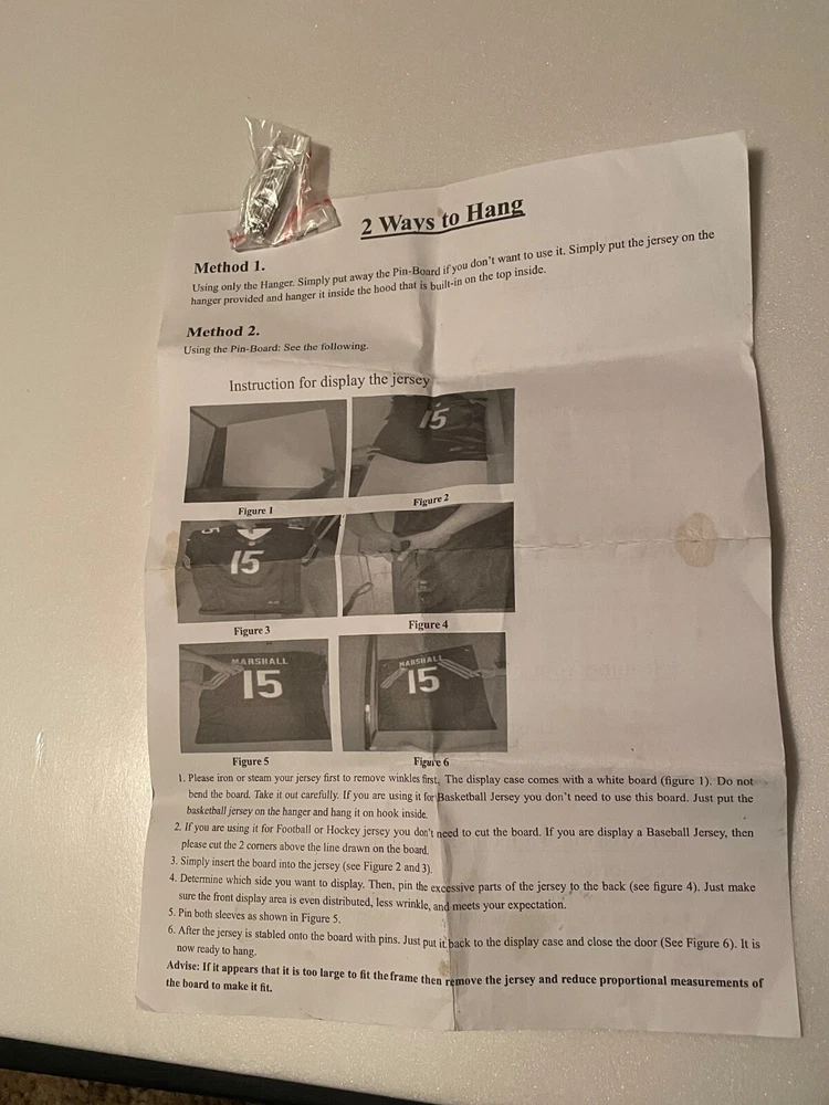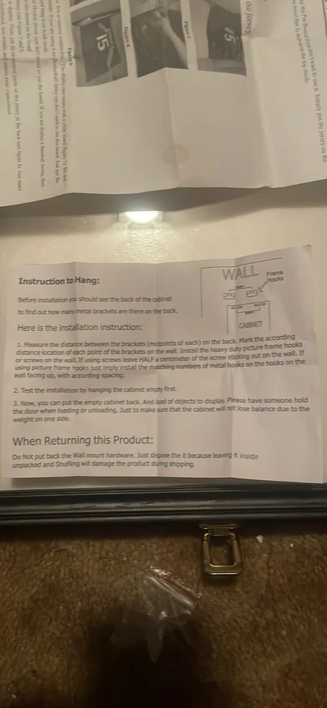 31.5in x 23.5in x 2in UV protected jersey wall hang able lockable display shadow box with hanger and Pin board to pin the jersey on. Mounting hardware included and 2 keys. Showcase your favorite football jersey with this UV protected display box. Built to last, this shadow display box will keep your treasured item safe from harmful rays while showcasing its beauty. Perfect for collectors and fans alike, this original and authentic display case is a must-have for any sports memorabilia enthusiast.