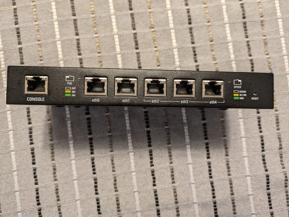 Experience the power and reliability of Ubiquiti Networks with the ERPoe-5 EdgeRouter, a high-performance PoE router designed for businesses seeking seamless network connectivity. The EdgeRouter PoE model offers a 1 WAN port and 5 LAN ports, enabling you to connect multiple devices and manage your network with ease. This router supports a maximum LAN data rate of 1000 Mbps/1 Gbps, ensuring quick and efficient data transfer. With its wireless capabilities, including Wi-Fi 802.11a/b/n/g, and Ethernet (RJ-45) interface, the Ubiquiti EdgeRouter provides versatile network connectivity options. Its external form factor allows for easy integration into your existing network infrastructure.