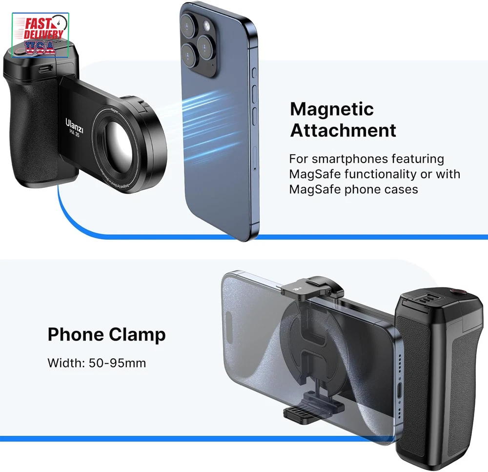 Store New Arrivals Add to Favorite View Feedback Contact Ulanzi MA35 Smartphone Camera Shutter Grip Compatibile with Magsafe for Iphone W Wireless Remote Control Phone Clamp Holder Selfie for 1/4" Tripod Mount Cold Shoe Extension Video Shooting Acccessories Description ¿Qué hay en la caja? Agarre para cámara de teléfono Color Negro - Peso del artículo 130 Gramos Otras características de pantalla Inalámbrico Fabricante CGMULANZI Dispositivos compatibles Teléfono móvil Dimensiones del paquete 6,06 x 4,92 x 2,05 pulgadas País de origen China Número de modelo del producto CGMULANZI Model CGMULANZI Balance & Stability: Bridge the gap in photography performance. MA35 Camera Grip turns your phone into a pro-level camera that's always with you. Compatibe with almost all the smartphones in the market. Prefect for iPhone 16/15/14/13/12 Pro/15 Pro Max/Pro Max/X/XS/XR/ XS Max/8 plus, for Google pixel 8 pro, Samsung Galaxy S22/S21/S10/10+ /S9/S9+/S8/S8+/S7/S6/S6 edge, etc Magnetic or Phone Clamp Connection: The MA35 Grip magnetic accessories feature a secure magnetic connection that easily links together, allowing you to customize your workflow on-the-go. This seamless connection enhances your experience and provides a versatile platform for MagSafe compatible devices. Phone clamp fits devices that are 1.96 to 3.74" in width Vertical and Horizontal Mode: The phone grip offers ease of use, enabling quick adjustments between vertical and horizontal shooting Comfort Grip: Ergonomic non-slip grip fits around your hand and stabilizes your phone while shooting No More False Triggering: Smart design leaves enough space between your phone and the grip, ensuring worry-free shooting experience. Also comes with a detachable remote control, 15 m / 49.2 ft wireless remote control, compatible with iOS and Android systems, and can be easily connected to your smartphone without downloading an app Multiple Extension --- Your Phone Grip, Your Way: The cold shoe mount, 1/4" screw, and the magnetic mount are built for your accessories, keeping creativity flowing. Allows to add external microphone / fill light and turns into a professionla video shooting rig Product Description ABOUT US We offer the best prices around on high quality products. Our E-store includes media such as books, movies, music and games while offering electronics, toys, sporting apparel, clothing, tools, general home, garden items and more. SHIPPING We are always working hard to ensure your package arrives as soon as possible. Please understand that some factors like weather, high postal traffic, and the performance of shipping companies are outside of our control. We offer free shipping to the lower 48 states and ship within 2 business days of payment, usually sooner. We do not accept P.O. Boxes. Please provide a physical address. For shipping outside of the continental USA, we only use eBay's Global Shipping Program.The item is shipped to KY and then sent to the rest of the world. International customers are responsible for all duties and taxes. Continue to check out in order to calculate costs for shipping the item to your country. Messages regarding eBay's Global Shipping Program MUST be directed at eBay EXCLUSIVELY. RETURNS We offer a 30-Day Return Policy on items which you are not completely satisfied with. You have the option for a full-refund or an exchange of the item. No returns are available on items shipped outside of the USA. PAYMENT We accept PayPal. CONTACT US This page content is yet to come Please ad us to your favorite seller and visit again later Thank You CUSTOMER SATISFACTION We try our very best to make sure every customer is completely satisfied. If there's a problem, message us! We're happy to help. WE ACCEPT Copyright © 2021 AutoDS. | All Rights Reserved