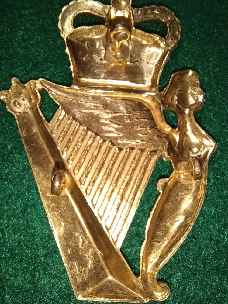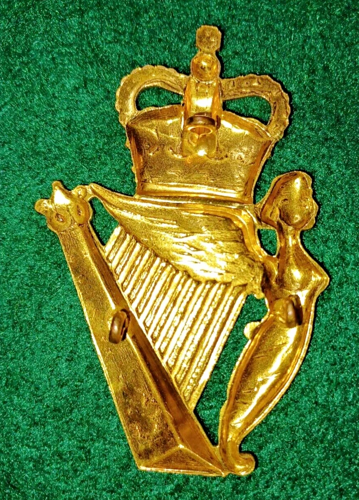 Ulster Defence Regiment Piper's Caubeen Cap Badge Large Ulster Defence Regiment pipers badge ca. 1970/80 gilded brass. Nice badge in excellent condition now becoming hard to find. Badge size : 7.5 cms by 5.3 cms approximately. VGC. The Ulster Defence Regiment (UDR) was an infantry regiment of the British Army established in 1970, with a comparatively short existence ending in 1992. Raised through public appeal, newspaper and television advertisements, their official role was the "defence of life or property in Northern Ireland against armed attack or sabotage" but unlike troops from Great Britain they were never used for "crowd control or riot duties in cities". It was the largest infantry regiment in the British Army, formed with seven battalions plus another four added within two years. It consisted mostly of part-time volunteers until 1976, when a full-time cadre was added. Recruiting in Northern Ireland at a time of intercommunal strife, some of its (mostly Ulster Protestant) members were involved in sectarianism. The regiment was originally intended to more accurately reflect the demographics of Northern Ireland, and began with Catholic recruits accounting for 18% of its soldiers; for various reasons, by the end of 1972 this had dropped to around 3%. It is doubtful if any other unit of the British Army has ever come under the same sustained criticism as the UDR. Uniquely in the British Army, the regiment was on continuous active service throughout its 22 years of service. It was also the first infantry regiment of the British Army to fully incorporate women into its structure. In 1992, the UDR was amalgamated with the Royal Irish Rangers to form the Royal Irish Regiment. In 2006, the regiment was retroactively awarded the Conspicuous Gallantry Cross, which entitled it to be known as The Ulster Defence Regiment CGC. Guaranteed genuine. We can gladly combine items to save on shipping costs if you add to basket and send an invoice request before paying. See our other listings. Please visit our website : arcticmedals dot com for illustrated list of Military Medals and especially Canadian badges. Fair prices offered for your surplus items or trade .