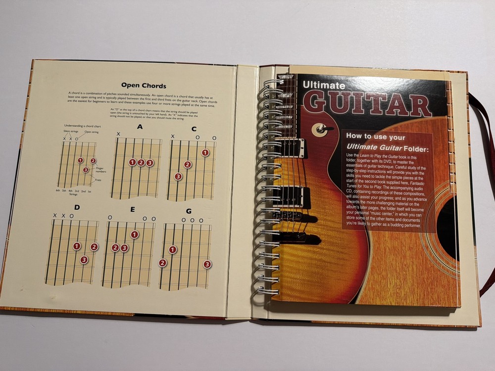 Ultimate Guitar Parragon. Bath, UK: Parragon, 2010. Hardcover. Spiral binding. Dimensions: 12 in. x 10 in. x 2 in. Interactive collection for learning guitar basics. Includes over 25 tunes, step-by-step DVD, and audio CD. Page count not specified. This comprehensive guide offers clear instruction with full-color photos and detailed diagrams. The accompanying DVD guides users through the basics, while the sheet music spans various genres and eras. Presented in a beautifully designed folder for storage of documents and keepsakes. “Learn to Play the Guitar features clear step-by-step instruction…” “Fantastic Tunes for You to Play is a varied collection of sheet music…” Parragon is known for producing quality instructional materials. This book serves as an excellent resource for both beginners and those looking to refine their skills. Only one in stock. Once it’s gone, it’s gone. Ships fast, packed with care. Click “Buy Now” to make it yours. ✨ Condition ✨ Very good condition. Pages clean, supple, and unmarked. See pictures. ✨ Disclaimer ✨ This book is sold AS IS. There are no refunds. Please review the images carefully to ensure you know what you're buying. 💫 Looking for more like this? 💫 I sell music books and books on all kinds of subjects – some practical, some unusual, some hard to find. Buying two or more gets you an automatic discount at checkout, so feel free to look through my other listings including music books . Any questions, feel free to message me and I'll get back to you soon.