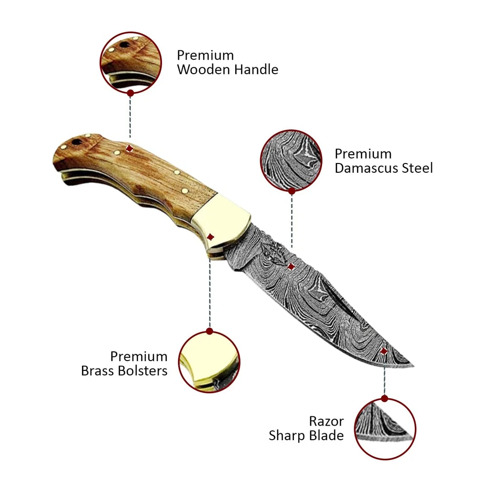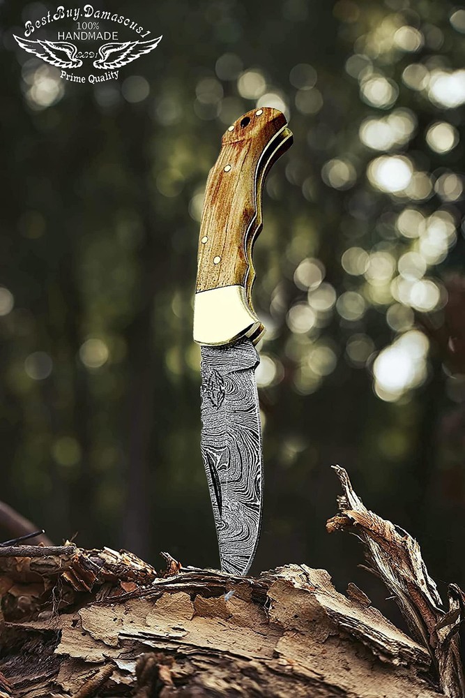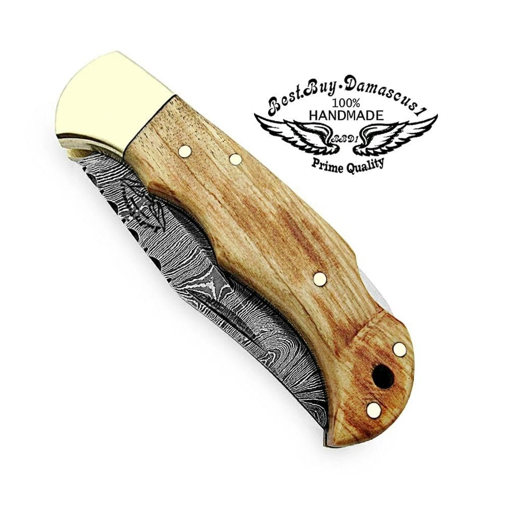 This compact folding knife is a masterpiece! The razor-sharp Damascus steel blade glides effortlessly, while the handcrafted olive wood handle feels smooth and luxurious in the palm. It’s not just a tool—it’s a stunning piece of functional art. Perfect balance, unbeatable craftsmanship, and the unique wood grain makes each piece one-of-a-kind. A must-have for collectors and everyday carry alike!