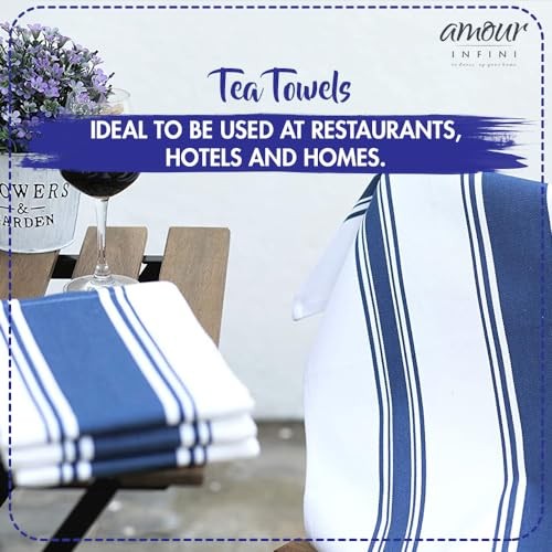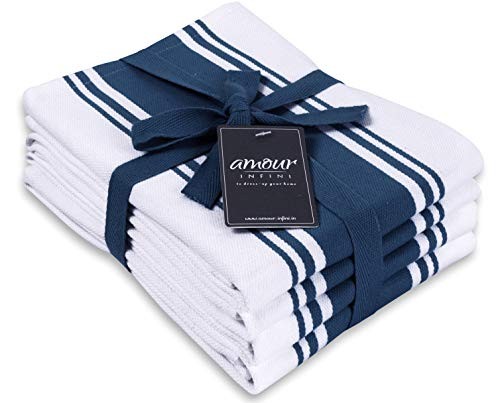 These kitchen towels are amazing! Super soft, super absorbent, and the perfect size for drying dishes or wiping counters. Love the hanging loop—makes storage so easy. They dry quickly and hold up well after washing. The blue stripes add a nice touch to my kitchen. Fast shipping and great seller—definitely recommend!
