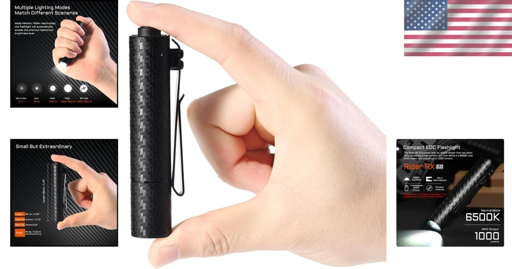 Ultra Bright 1000 Lumens Mini Flashlight - Perfect for Camping & Emergencies ‹ › ‹ › ‹ › ‹ › ‹ › ‹ › ‹ › ‹ › Ultra Bright 1000 Lumens Mini Flashlight Perfect for Camping & Emergencies Features: Max output of 1,000 lumens with a stunning beam distance of 105 meters, powered by high-performance LED technology. Cool white light with a 6500K color temperature ideal for everyday use including dog walking, home security, and outdoor adventures. Rechargeable battery included, offering a sustainable and economical lighting solution; compatible with any AA battery for versatile power options. Compact and lightweight design at just 3.7 inches long and less than an inch wide, effortlessly fitting into your purse, backpack, or pocket. Durable construction from hard anodizing aircraft-grade aluminum alloy, with an IP68 waterproof and dustproof rating, ensuring reliability in harsh weather conditions. Impact-resistant up to 1.5 meters, providing peace of mind in case of accidental drops. Stylishly designed with a blue aluminum alloy inner core, a perfect gift for loved ones, symbolizing protection and joy. Why Choose Our Ultra Bright Mini Flashlight? Are you looking for a reliable and high-performance flashlight that combines power and portability? The Ultra Bright 1000 Lumens Mini Flashlight is the perfect solution, designed for everyday tasks and emergencies alike. With its impressive lighting capabilities and rugged durability, this flashlight stands out as an indispensable tool for both outdoor enthusiasts and everyday users. Your safety and convenience are guaranteed with features like a rechargeable option, compact size, and robustness against the elements. It’s more than just a flashlight; it’s a reliable companion that guards you through life’s adventures. Choose the Ultra Bright 1000 Lumens Mini Flashlight and step into the light, knowing you’re always prepared. Order yours today! Shipping Free & Fast Shipping - We offer free shipping to most of the USA with a normal delivery time of 3-7 days. However, due to the current situation, additional delivery time (up to 3 weeks) may be required for some items. Alternative Carriers - We may use alternative carriers (e.g. USPS, FedEx, UPS, etc.) to ensure your package arrives safely and on time. Due to the use of multiple carriers, we are unable to provide a tracking number automatically. Handling Time - Orders are processed and shipped within 1-2 business days of receiving cleared payment. Shipping Restrictions - Shipping to Alaska, Hawaii, Puerto Rico, Guam, and other US territories may incur shipping charges or delivery restrictions. Please contact us before ordering, or your order can be refunded/cancelled. State Restrictions - There may be restrictions based on your state of purchase. For example, certain items may not be shipped to California due to state regulations. Contact for Tracking Updates - If you require tracking updates or have any concerns about the delivery of your order, please feel free to contact us, and we will be happy to assist you. Return 30-Day Hassle-Free Returns - We want you to be completely satisfied with your purchase. If you are not, you can return the item within 30 days of receiving it for a full refund or exchange. Easy Return Process - To start a return, simply contact us and we will provide you with a prepaid return shipping label and detailed instructions. Restocking Fee - There are no restocking fees for returns. However, the buyer is responsible for return shipping costs if the return is not due to a seller's error. Refund Processing Time - Refunds will be processed within 5 business days of receiving the returned item in its original condition. Payment We accept all major credit cards, PayPal, and Apple Pay for your convenience. Your payment information is secure and encrypted to ensure a safe and seamless transaction. Please complete your payment within 3 days of purchase to avoid any delays in shipping. Feedback Your feedback is extremely important to us. We strive to provide the best products and customer service possible. If you are satisfied with your purchase, please take a moment to leave us a positive review. If you have any concerns or issues with your order, please contact us before leaving negative feedback. We are committed to resolving any problems and ensuring your satisfaction. Contact Us If you have any questions or concerns, please feel free to reach out to our customer support team. You can contact us through the eBay messaging system. We are available Monday to Friday, 9:00 am to 5:00 pm EST, and we will do our best to respond to your inquiry within 24 hours. Thank you for supporting our small family business! UPC: Not Set Voltage: No Battery Item Height: EDC Flashlight Item Length: EDC Flashlight Item Weight: 0.14 pounds Item Width: Not Set Model: Not Set Lumens: 1000 Number of LEDs: 1 Unit Quantity: 1 Features: Clip On,Handheld,Rechargeable,Waterproof,Mini Gadget Design Material: Aluminum,Aluminum Alloy Brand: Unbranded Type: Flashlight Lighting Technology: LED Power Source: Battery Operating Range: 105 m MPN: Not Set Battery Technology: Li-Ion Number of Batteries: 1 Color: Carbon Fiber Black Country/Region of Manufacture: Not Set IP Rating: IP68 Operating Time: More Than 10 Hours Number of Lights: 1-3 Unit Type: lb Personalize: Not Set