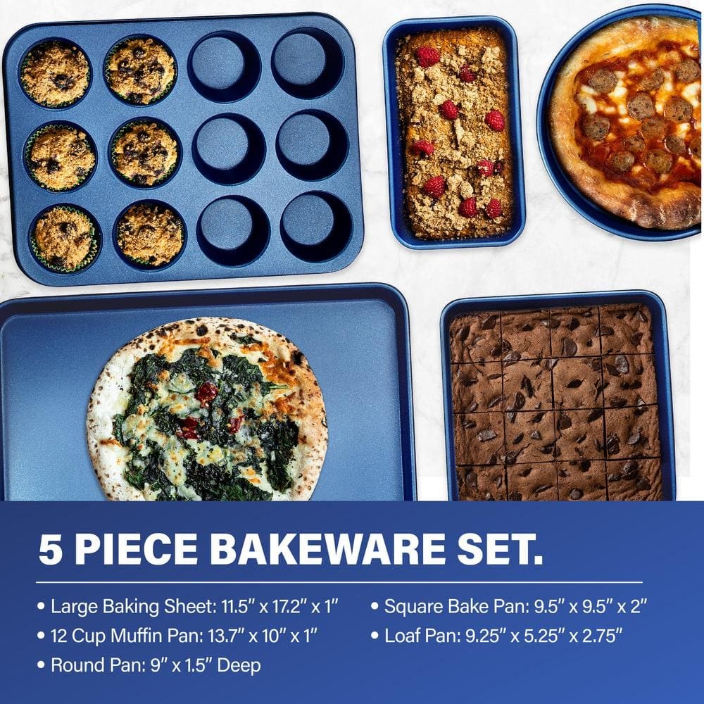 Customize your kitchen with this awesome Granitestone 15-piece cookware and bakeware set. It's got solid aluminum construction for perfectly even heating. You can pop it in the oven too, since it's safe up to 500 degrees F. Also, the stainless steel handles stay cool, so you can grab them comfortably while you're cooking up a storm. This set is built to last, featuring an extra-thick, diamond-infused coating. The cool-touch handles ensure you get a firm, safe grip every time. With an aluminum sheet for uniform heat distribution and a triple-coated diamond surface, flipping and releasing food is a breeze. Acacia has very good wood-working properties Complete cookware set - set includes everything you need to get cooking right out of the box including - 8.5 ... Urintelligentbi Hello, respected customer Classic Blue 15-Piece Aluminum Ultra-Durable Non-Stick Diamond Infused Cookware and Bakeware Set Customize your kitchen with this awesome Granitestone 15-piece cookware and bakeware set. It's got solid aluminum construction for perfectly even heating. You can pop it in the oven too, since it's safe up to 500 degrees F. Also, the stainless steel handles stay cool, so you can grab them comfortably while you're cooking up a storm. This set is built to last, featuring an extra-thick, diamond-infused coating. The cool-touch handles ensure you get a firm, safe grip every time. With an aluminum sheet for uniform heat distribution and a triple-coated diamond surface, flipping and releasing food is a breeze. Acacia has very good wood-working properties Complete cookware set - set includes everything you need to get cooking right out of the box including - 8.5 in. skillet, 10.25 in. frying pan, tempered glass lid for 10.25 in. frying pan, 1.5 in. qt. sauce pan with tempered glass lid, 2.5 in. qt. stock pot with tempered glass lid, 5- qt. stock pot with tempered glass lid, xl aluminum steamer insert, 9.5 in. square baking pan, muffin pan for 12 muffins, 9.5 in. round baking pan, 9.7 in. x 5.75 in. loaf pan, 17.7 in. x 12.7 in. cookie tray Ultra non-stick - granite stone blue nonstick cooking surface is coated three times, reinforced with diamonds to deliver ultimate food release, no oil or butter needed, makes for healthier eating and provides for hassle-free, 1-2-3 cleanup Super durable - coating of pan is infused with diamonds, the strongest material on earth which makes it durable enough to withstand metal utensils, spatulas, spoons, whisks and even electric beaters while delivering years of outstanding, nonstick use Effortless cleanup, dishwasher safe - spend less time with cleanup, after all cooking and prepping is done, place cookware in dishwasher for quick and easy cleanup Stovetop and oven safe - compatible with gas, electric, glass cooktops and oven safe up to a sizzling up to 500-degree F lids included Stay cool handles - stainless-steel handles are ergonomically designed for both righty and lefties and unique y-shaped handles let's heat escape and keeps handles cool to touch Healthy and non-toxic - all granite stone products are free of PFOA, PFOS, lead and cadmium Even heat distribution - stamped from a solid sheet of aluminum ensures even heat distribution all around with no dead zones or hot spots 10-year guarantee - our cookware is built for years of use and backed by a 10-year limited guarantee Need help with a home project? Let us do it for you - 1 800 HOME DEPOT or visit Home Depot.com/services Color Family:Blue|Color Family:Blue|Color/Finish:Classic Blue|Color/Finish:Classic Blue|Cooktop Compatibility:Electric Coil,Electric Smooth Top,Gas|Cooktop Compatibility:Electric Coil,Electric Smooth Top,Gas|Features:Built-in Handles,Dishwasher Safe,Hard-Anodized,Multi-Pack,Nonstick,Oven Safe,Stainless Steel Handle|Features:Built-in Handles,Dishwasher Safe,Hard-Anodized,Multi-Pack,Nonstick,Oven Safe,Stainless Steel Handle|Includes:Baking Sheet,Frying Pan,Lid,Stock Pot|Includes:Baking Sheet,Frying Pan,Lid,Stock Pot|Individual/Set:Set|Individual/Set:Set|Kitchen Product Type:Cookware Set|Kitchen Product Type:Cookware Set|Material:Aluminum|Material:Aluminum|Maximum Heating Temperature (Fahrenheit):500|Maximum Heating Temperature (Fahrenheit):500|Number of Pieces:15|Number of Pieces:15|Number of cookware pieces:15|Number of cookware pieces:15|Package Type:Assorted Set|Package Type:Assorted Set|Returnable:90-Day|Returnable:90-Day|Manufacturer Warranty:Limited 10 Years|Manufacturer Warranty:Limited 10 Years Item Specifics Brand GRANITESTONE Type Pan Sets UPC 080313075223 Model 7522 Payment [ 1. We accept Paypal. Each buyer's payments is protected by Ebay. 2. Payment time affects delivery time. 3. If you want more quantities or other models , please contact us! ] Shipping [ 1.Processing time It normally takes 3 business days. We will confirm in time after receiving the payment from the buyer, verify the address of buyer then deliver the item according to the buyer's order time. 2.Shipping time We ship to eBay's address only,please ensure your address in eBay. We ship to all parts of the world, but we are sorry that we do not support the Russian Federation and Ukraine for the time being. There may be some delay due to flight, National holiday, weather, local natural disaster impact, etc, hope you can be patient and contact us freely, we will try our best to help you. ] Returns [ 1. We gu arantee to provide you with a five-star shopping experience, and provide return& refund services for buyers. If you are not satisfied when you receive the items, please contact us within 30 days for return and refund. (Buyer pays return shipping) 2. Please don't open case via ebay or paypal. 3. For order questions please contact us via the Ebay Message System. We are willing to answer your questions and we will provide you the best soloution within 24 hours. Please understand that we are not in the office on Saturday and Sunday, so the questions asked over the weekend will be answered on the following Monday. 4. We sin