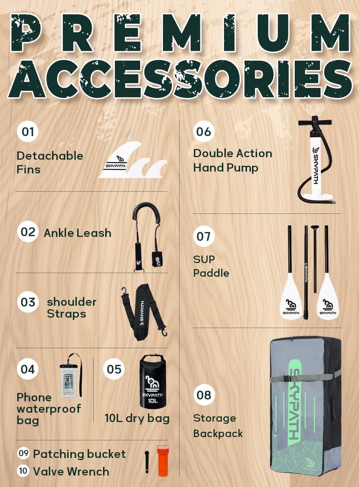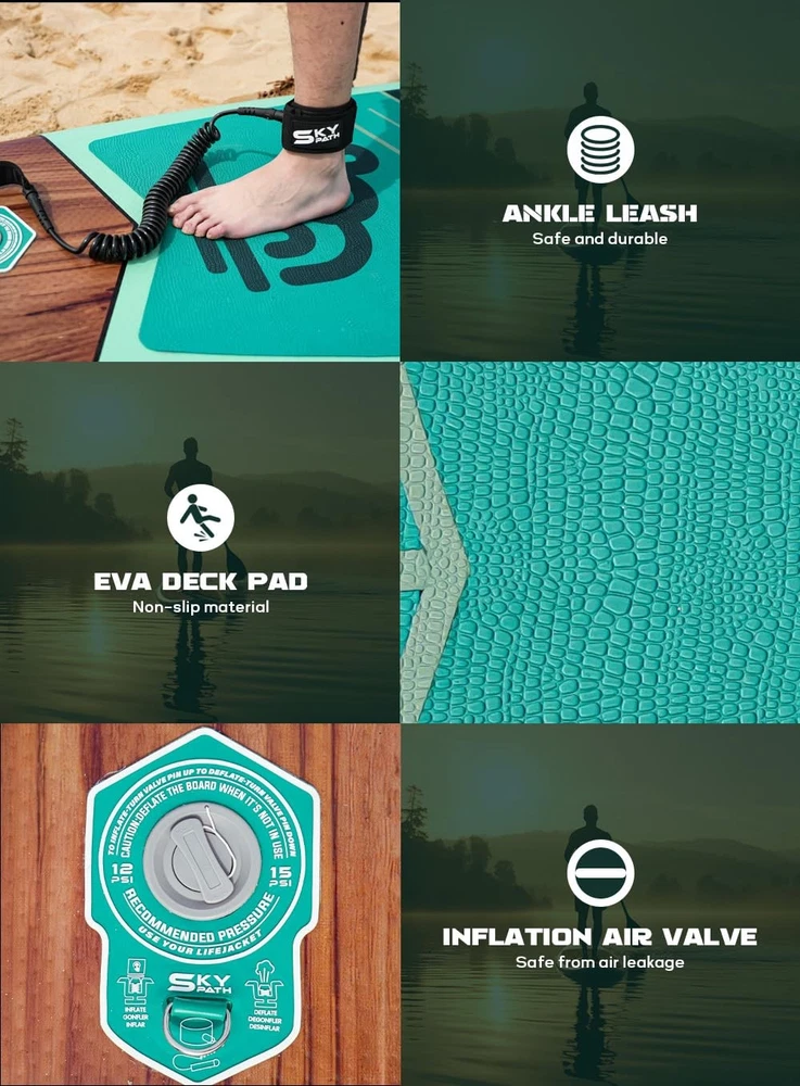 turn with ease, while the reinforced drop-stitch core keeps it rigid and durable. Super lightweight and easy to inflate—perfect for lakes, rivers, or ocean adventures. The included pump and paddle make it ready to go right out of the box. Super stable even for beginners, yet responsive enough for more experienced paddlers. Love how compact it packs down for storage or travel. A fantastic value for the quality!