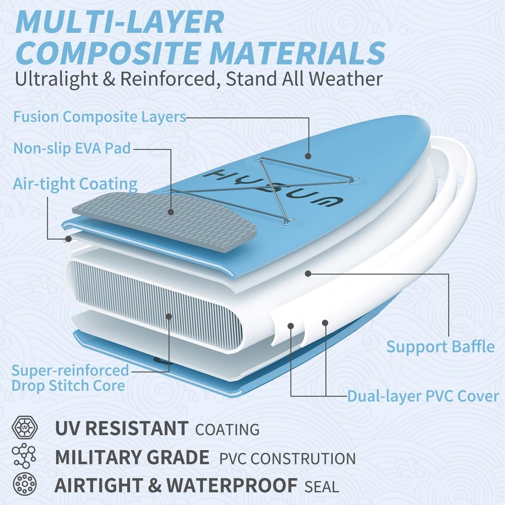 This paddleboard is a game-changer! Super lightweight yet incredibly durable thanks to military-grade materials and reinforced stitching. The EVA deck pad keeps you stable and comfortable, even on long rides. Perfect for beginners and pros alike—just don’t forget the pump! Highly recommend for anyone who loves smooth, worry-free paddling.