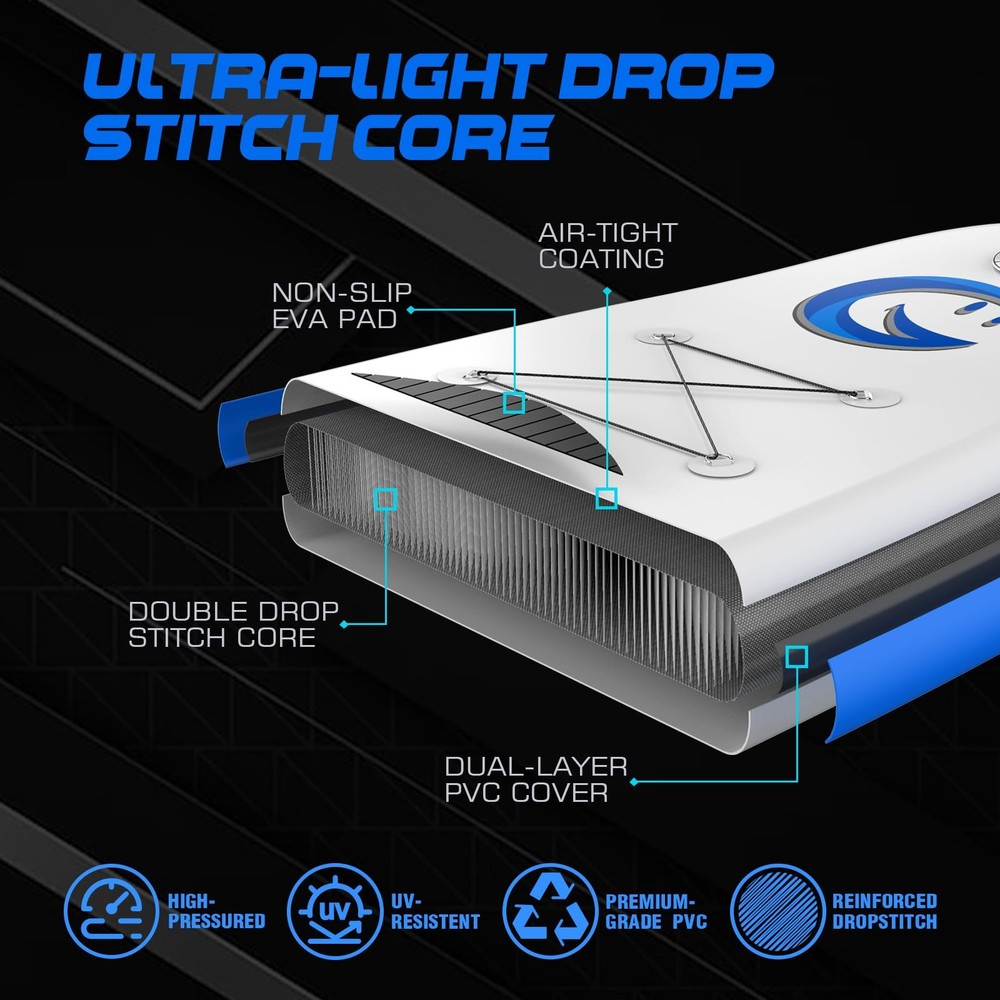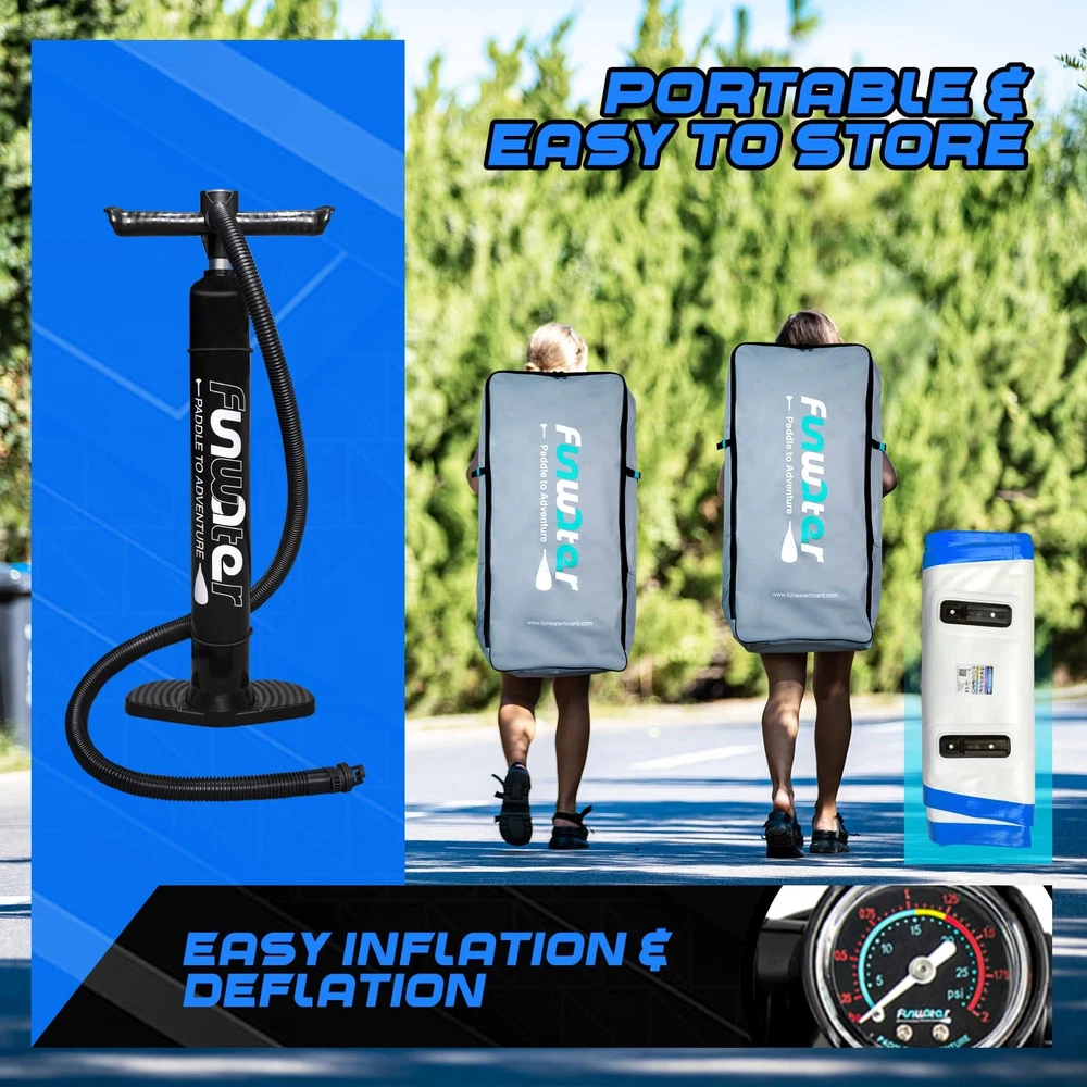 paddleboard, a new partner for water adventure paddleboard is dedicated to creating high-quality water sports equipment. Our paddle boards are known for their exquisite craftsmanship and innovative design. Using ultra light grade double wall PVC materials, they are both tough and durable yet lightweight and portable, allowing you to easily go to any water area you desire. The wide board provides you with ample activity space, and the stable structure ensures safety. The unique appearance design is stylish and eye-catching. Whether it's an exciting adventure or enjoying a peaceful time on the water, stand up paddle board can meet your needs. We are committed to providing users with excellent products and quality services, allowing you to fully release your vitality on the water and feel the charm of nature. Come and choose inflatable paddle board to start your wonderful water world. 【Materials and Parameters】The new ultra light grade double wall PVC is 35% lighter than similar size products , with excellent wear resistance, toughness and long service life. The inflatable paddleboards standard size is 11'x 33" x 6 ", carrying 360 pounds. 【Stable and Secure】Three detachable fins help the paddleboard improve stability and speed on the water, with better steering and gliding power, allowing you to better control the paddleboard. Suitable for adults of all skill levels, it is also an ideal choice for carrying furry pets. From design to production process, we ensure that every detail of the support plate meets high standards. 【Design and Use】Stand up paddle board are constructed with anti-slip EVA deck for maximum durability, slip-resistance, and comfort. 's unique ergonomic handle design allows you to inflate your paddle more easily in a shorter time. The sensitive barometer ensures that you can read the sup inflation pressure value (12-15psi) at any time. The multifunctional elastic string can tightly fix any objects placed on the inflatable paddleboard. 【User Scenario】inflatable paddleboard is your first choice for water sports. This inflatable paddleboard can be used in various water conditions, such as oceans, lakes and rivers. Can meet the needs of your water exploration or adventure, and has a wide range of uses, suitable for yoga, surfing, travel and fishing and other water sports. 【Accessories Kit & Customer Service】SUP accessories include: adjustable paddle, fins, pump, backpack, waterproof phone bag, leash and repair kit. A complete set of accessories helps you conquer the waves more pleasantly. is committed to offering unparalleled customer service for all of the customers. If you have any questions about the paddle board, please feel free to contact us and we will do my best to solve the problem for you.