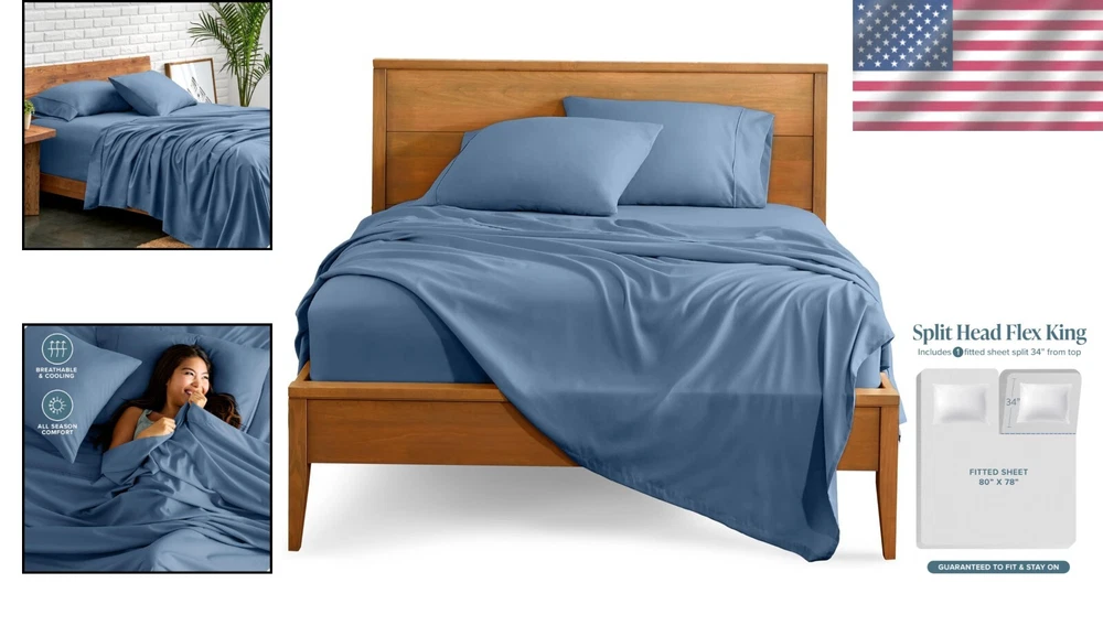 Ultra-Soft Split Head Flex King Bedding Set - All-Around Elastic & Modern Style ‹ › ‹ › ‹ › ‹ › ‹ › ‹ › ‹ › ‹ › ‹ › ‹ › ‹ › Ultra-Soft Split Head Flex King Bedding Set All-Around Elastic & Modern Style Indulge in Unparalleled Comfort: Ultra Soft Sheets: Crafted from our proprietary hydro-brushed fabric, this bedding set is ultra-soft, lightweight, and airy, ensuring you stay warm in winter and cool in summer. Wide Range of Colors: Available in an array of colors to complement any bedroom aesthetic, allowing you to create a serene and inviting space. Exceptional 4-Piece Set: 1 King Flat Sheet (108" x 102") 2 King Pillowcases (20" x 40") 1 Split Head Flex King Fitted Sheet with all-around elastic (80" x 78" x 15" Pocket) designed to grip and fit mattresses up to 15" deep seamlessly. All-Around Elastic Advantage: Our fitted sheet features all-around elastic, ensuring a snug fit that keeps it in place throughout the night, even with restless sleepers. Effortless Care: Enjoy easy maintenance with machine wash cold on a gentle cycle and tumble dry low. Resistant to fading, staining, and wrinkling, ensuring lasting beauty. Commitment to Quality: Our products are OEKO-TEX STANDARD 100 certified, rigorously tested against over 1,000 harmful substances, providing peace of mind for you and your family. Make the Change: Detox your sleep with bedding made without harmful chemicals and dyes - That’s the Bare Standard. Transform your sleep sanctuary with our Ultra-Soft Split Head Flex King Bedding Set. Experience the difference in comfort, quality, and care. Order now and embrace a new standard of sleep luxury! Shipping Free & Fast Shipping - We offer free shipping to most of the USA with a normal delivery time of 3-7 days. However, due to the current situation, additional delivery time (up to 3 weeks) may be required for some items. Alternative Carriers - We may use alternative carriers (e.g. USPS, FedEx, UPS, etc.) to ensure your package arrives safely and on time. Due to the use of multiple carriers, we are unable to provide a tracking number automatically. Handling Time - Orders are processed and shipped within 1-2 business days of receiving cleared payment. Shipping Restrictions - Shipping to Alaska, Hawaii, Puerto Rico, Guam, and other US territories may incur shipping charges or delivery restrictions. Please contact us before ordering, or your order can be refunded/cancelled. State Restrictions - There may be restrictions based on your state of purchase. For example, certain items may not be shipped to California due to state regulations. Contact for Tracking Updates - If you require tracking updates or have any concerns about the delivery of your order, please feel free to contact us, and we will be happy to assist you. Return 30-Day Hassle-Free Returns - We want you to be completely satisfied with your purchase. If you are not, you can return the item within 30 days of receiving it for a full refund or exchange. Easy Return Process - To start a return, simply contact us and we will provide you with a prepaid return shipping label and detailed instructions. Restocking Fee - There are no restocking fees for returns. However, the buyer is responsible for return shipping costs if the return is not due to a seller's error. Refund Processing Time - Refunds will be processed within 5 business days of receiving the returned item in its original condition. Payment We accept all major credit cards, PayPal, and Apple Pay for your convenience. Your payment information is secure and encrypted to ensure a safe and seamless transaction. Please complete your payment within 3 days of purchase to avoid any delays in shipping. Feedback Your feedback is extremely important to us. We strive to provide the best products and customer service possible. If you are satisfied with your purchase, please take a moment to leave us a positive review. If you have any concerns or issues with your order, please contact us before leaving negative feedback. We are committed to resolving any problems and ensuring your satisfaction. Contact Us If you have any questions or concerns, please feel free to reach out to our customer support team. You can contact us through the eBay messaging system. We are available Monday to Friday, 9:00 am to 5:00 pm EST, and we will do our best to respond to your inquiry within 24 hours. Buy it now and enjoy a pleasant shopping experience! UPC: Not Set Item Length: Not Set Item Width: Not Set Unit Quantity: 1.0 count Material: Microfiber Character: Not Set Theme: Winter Care Instructions: Machine Wash Features: Ultra Soft,Deep Pocket,All-Around Elastic,Lightweight,Hotel Luxury,Easy Fit Department: Adults Room: Bedroom Labels & Certifications: Not Set Brand: Unbranded Size: Split Head Flex King Type: Sheet Set Color: Coronet Blue Pattern: Solid Character Family: Not Set MPN: Not Set Country/Region of Manufacture: Not Set Thread Count: 1800 Style: Modern Shape: Rectangular Model: Not Set GSM (Grams per Square Meter): Over 800 Product Line: Not Set Unit Type: Unit
