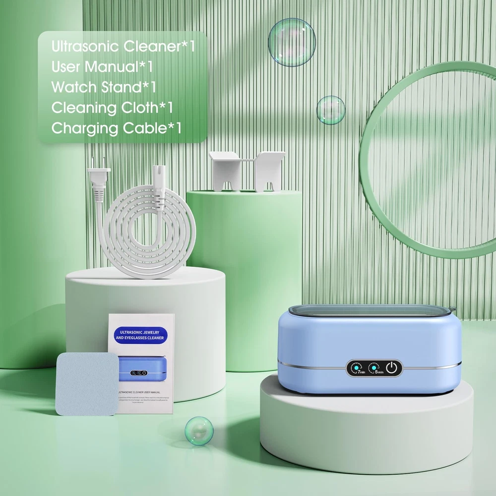Professional Ultrasonic Jewelry Cleaner: Effortlessly cleans and restores the sparkle of jewelry, eyeglasses, watches, coins, and more by reaching into crevices and cavities to remove dirt and debris within minutes, all without causing damage. Note: This Jewelry Cleaner does not remove tarnish discoloration(using an ultrasonic cleaning solution is recommended) 2025 New Upgraded Dual-Core Ultrasonic Cleaner:This ultrasonic jewelry cleaner utilizes the latest dual-core ultrasonic frequency technology, generating millions of tiny bubbles to provide deep, non-invasive cleaning. It ensures thorough removal of contaminants like dirt, without damaging delicate surfaces. Durable and High-Performance Construction:Built with a corrosion-resistant 304-grade stainless steel tank and industrial-grade transducers, the ring cleaner guarantees durability, stability, and enhanced cleaning performance. The tank's seamless design prevents leaks and ensures extended service life. Versatile Applications: Emphasize the jewelry cleaner ultrasonic machine’s versatility for cleaning a wide range of items, including Jewelry,Glasses ,Ring, dental instruments, electronic parts, coins, and personal items, making it suitable for home, professional, or industrial use. Versatile Applications: Emphasize the jewelry cleaner ultrasonic machine’s versatility for cleaning a wide range of items, including Jewelry,Glasses ,Ring, dental instruments, electronic parts, coins, and personal items, making it suitable for home, professional, or industrial use. Package Contents: Ultrasonic jewelry cleaning machine*1, 1*watch stand, and 1*user manual. Ideal for cleaning jewelry, eyeglasses, watches, and other delicate items, it's a gift that combines utility with convenience for everyday use.