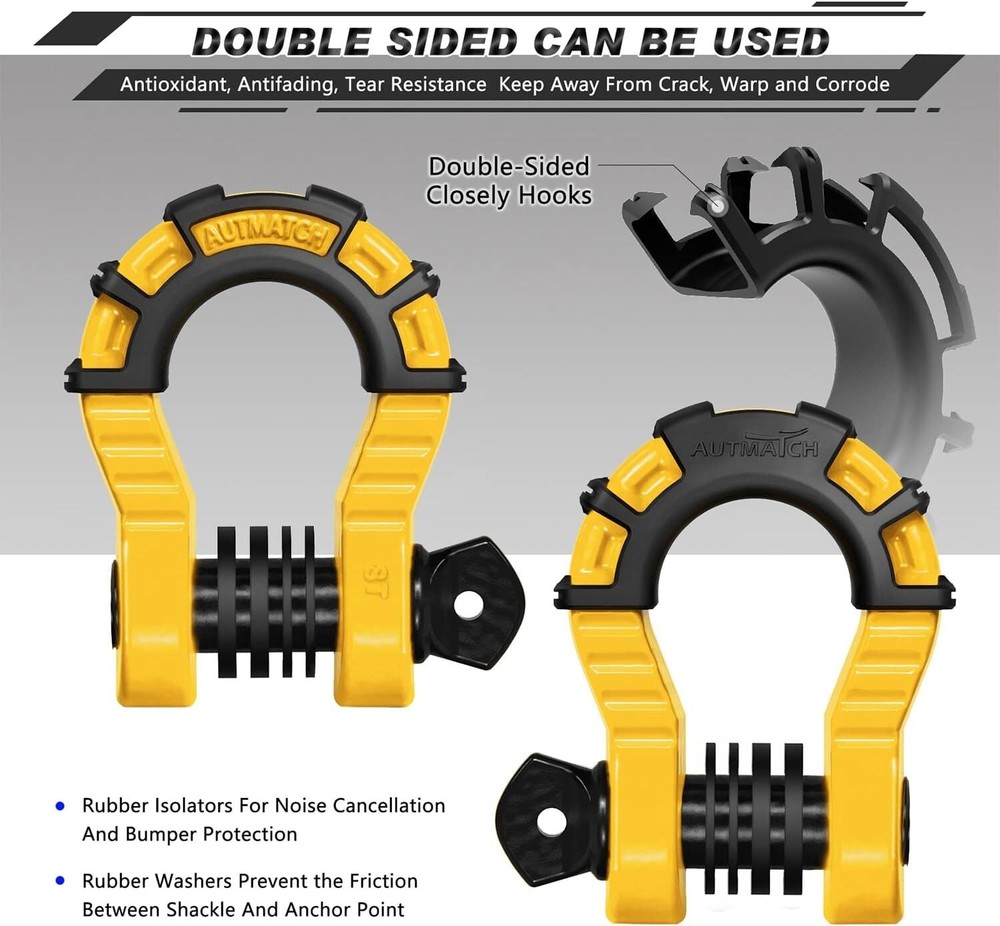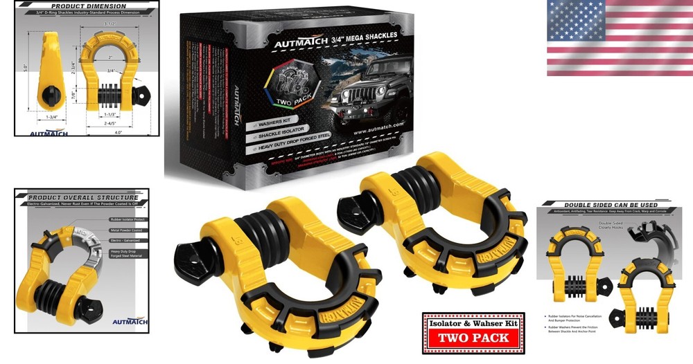 Ultra-Strong 3/4" Mega D Ring Shackles with Rubber Washers - Off-Road Essential ‹ › ‹ › ‹ › ‹ › ‹ › ‹ › ‹ › ‹ › ‹ › Ultra-Strong 3/4" Mega D Ring Shackles with Rubber Washers Off-Road Essential for Adventurers Super Quality & Performance: Crafted from ultra-strong drop forged steel, ensuring durability and reliability. Impressive breaking strength of 68,000 lbs and a towing capacity of up to 8 tons (17,000 lbs WLL). Designed with an industry-standard 7/8-inch screw pin for maximum stability and safety during use. Fitted Suite: Durable rubber shackle isolators provide added bumper protection against impact. Reduce rattling noise when mounted on your vehicle, ensuring a smooth ride. Rubber washers effectively prevent rattles caused by friction between the shackle and anchor point. Double Protection: Galvanized & powder-coated finish prevents rust and corrosion, offering lasting performance. Built to withstand harsh weather conditions, making it ideal for off-road adventures. Feature-Rich Design: Unique off-road recovery shackle design perfect for ATVs, UTVs, trucks, trailers, and sport-utility vehicles. Compatible with recovery tow straps, snatch blocks, tree savers, and more. Best Warranty & Support: All products are backed by a 100% satisfaction warranty service, ensuring peace of mind. Enjoy lifetime customer support; our dedicated team is here to assist with any inquiries. Why Choose Our Ultra-Strong D Ring Shackles? If you are an off-road enthusiast seeking reliable towing and recovery solutions, our Ultra-Strong Mega D Ring Shackles are your ultimate choice. Engineered from high-quality materials, these shackles combine exceptional strength with practical features, ensuring that you are prepared for any adventure. With enhanced safety features and double protection against corrosion, you can drive through tough terrains with confidence. Order your Ultra-Strong 3/4" Mega D Ring Shackles today and elevate your off-road experience! Shipping Free & Fast Shipping - We offer free shipping to most of the USA with a normal delivery time of 3-7 days. However, due to the current situation, additional delivery time (up to 3 weeks) may be required for some items. Alternative Carriers - We may use alternative carriers (e.g. USPS, FedEx, UPS, etc.) to ensure your package arrives safely and on time. Due to the use of multiple carriers, we are unable to provide a tracking number automatically. Handling Time - Orders are processed and shipped within 1-2 business days of receiving cleared payment. Shipping Restrictions - Shipping to Alaska, Hawaii, Puerto Rico, Guam, and other US territories may incur shipping charges or delivery restrictions. Please contact us before ordering, or your order can be refunded/cancelled. State Restrictions - There may be restrictions based on your state of purchase. For example, certain items may not be shipped to California due to state regulations. Contact for Tracking Updates - If you require tracking updates or have any concerns about the delivery of your order, please feel free to contact us, and we will be happy to assist you. Return Please see our eBay Return Policy. Thank you. Payment We accept all major credit cards, PayPal, and Apple Pay for your convenience. Your payment information is secure and encrypted to ensure a safe and seamless transaction. Please complete your payment within 3 days of purchase to avoid any delays in shipping. Feedback Your feedback is extremely important to us. We strive to provide the best products and customer service possible. If you are satisfied with your purchase, please take a moment to leave us a positive review. If you have any concerns or issues with your order, please contact us before leaving negative feedback. We are committed to resolving any problems and ensuring your satisfaction. Contact Us If you have any questions or concerns, please feel free to reach out to our customer support team. You can contact us through the eBay messaging system. We are available Monday to Friday, 9:00 am to 5:00 pm EST, and we will do our best to respond to your inquiry within 24 hours. Thank you for supporting our small family business! UPC: Not Set Placement on Vehicle: Bumper,Front,Rear,Underbody Features: Easy Installation,Heavy Duty,Rust-Resistant,Secure Coupling Material: Ultra-Strong Drop Forged Steel,Alloy Steel Mounting Style: Bolt-On,Screwed-On Pinhole Size: 7/8 in Finish: Powder-Coated,Galvanized & Powder Coated,Galvanized Items Included: Mounting Hardware,Screw Pin,Isolator,Washers Labels & Certifications: Not Set Brand: Unbranded Type: D Ring Shackle Hitch Class: Not Set Shape: Irregular Color: Yellow Tow Weight Capacity: 17000 lb Shank Length: Not Set Tongue Weight Capacity: Not Set Manufacturer Part Number: Not Set Receiver Tube Size: Not Set OE/OEM Part Number: Not Set Item Height: Not Set Shank Diameter: Not Set Trailer Hitch Harness Type: Universal Country/Region of Manufacture: Not Set Item Weight: 6.28 lb Trailer Hitch Style: Not Set Item Width: Not Set Item Length: Not Set Trailer Hitch Brand: Not Set Trailer Hitch Harness Brand: Not Set Manufacturer Warranty: Not Set Model: Not Set Interchange Part Number: Not Set Superseded Part Number: Not Set Universal Fitment: Not Set Vintage Part: Not Set Performance Part: Not Set