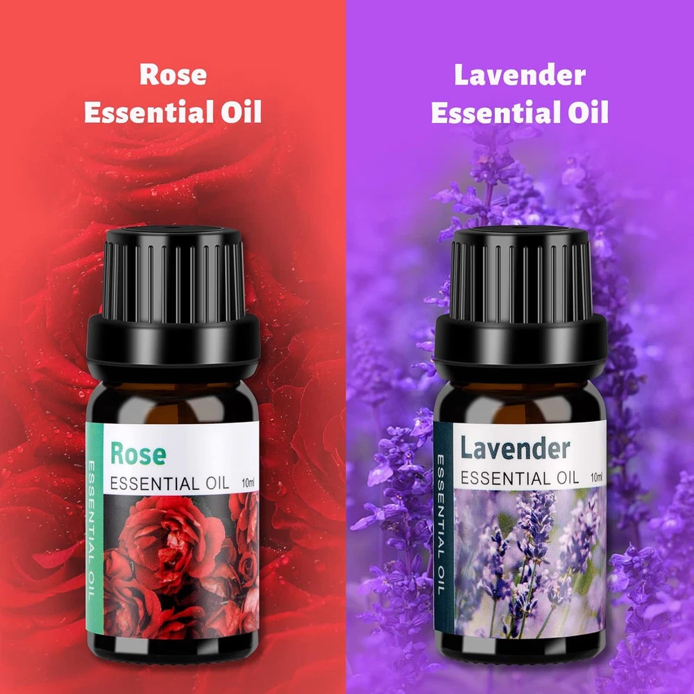 Diffuser with Remote & Essential Oils Set: The essential oil set includes our most popular black wood grain essential oil diffuser (550ml upgraded version) and top 2 pure essential oils. Lavender,rose essential oils go perfectly with ultrasonic oil diffuser to bring inviting, lively, and aromatic scent. Auto Shut-off & Large capacity: Essential Oils Diffuser can hold 550ML water up and run continuously for 10 hours.Just add a few drops of essential oils and you can enjoy a pleasant mood all day long. Time-Setting: Aromatherapy Diffusers comes with 4 built-in timer setting modes: 1 Hour/ 3 Hour/ 6 Hour/ Continuous. The bedroom diffuser gives out ultra fine and smooth mist which can soften and moisten dry and chapped skin. So sit back and enjoy work, study, yoga, relaxation, spa. Soothing Lights & Ultrasonic Technology: Adopted ultrasonic technology, this diffuser is extremely quiet when working. All you have to do is to relax and let the soothing fragrance and soothing lighting help you release all the tension of a hard day’s work. Wonderful Gifts for Your Lover and Friend: The Aroma Vapor Diffusers can be used as Humidifier,Air aroma machine, Night Light,Great Gift. To create a peaceful and comfortable environment for you to relax and enjoy life. Diffuser humidifier with essential oils is the best gift for your sweetheart. Product Description 1 Better Sleep 2 Whisper Quiet 3 Integrate Into Life How is the diffuser quality? Before the product is sold, we have done many kinds of product testing to ensure that it is the best quality on the market Which Oils Come with Aromatherapy Diffuser? Lavender, rose Is it quiet? I'm a light sleeper. The noise level of this diffuser is only 23 dB, the ultra-quiet fan can effectively reduce noise. It won't disturb you at night. Is it easy to clean? Yes, the wide and large water tank is very easy to clean, just add some warm water and diluted vinegar, and lay it aside for 15 minutes, then use a wet cotton swab to clean the middle white disc of the tank. Then wipe with a soft cloth.