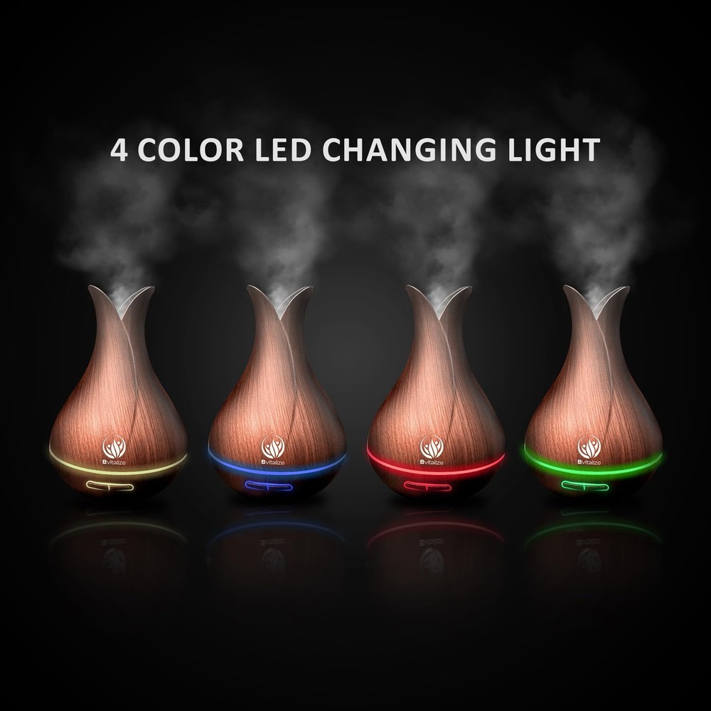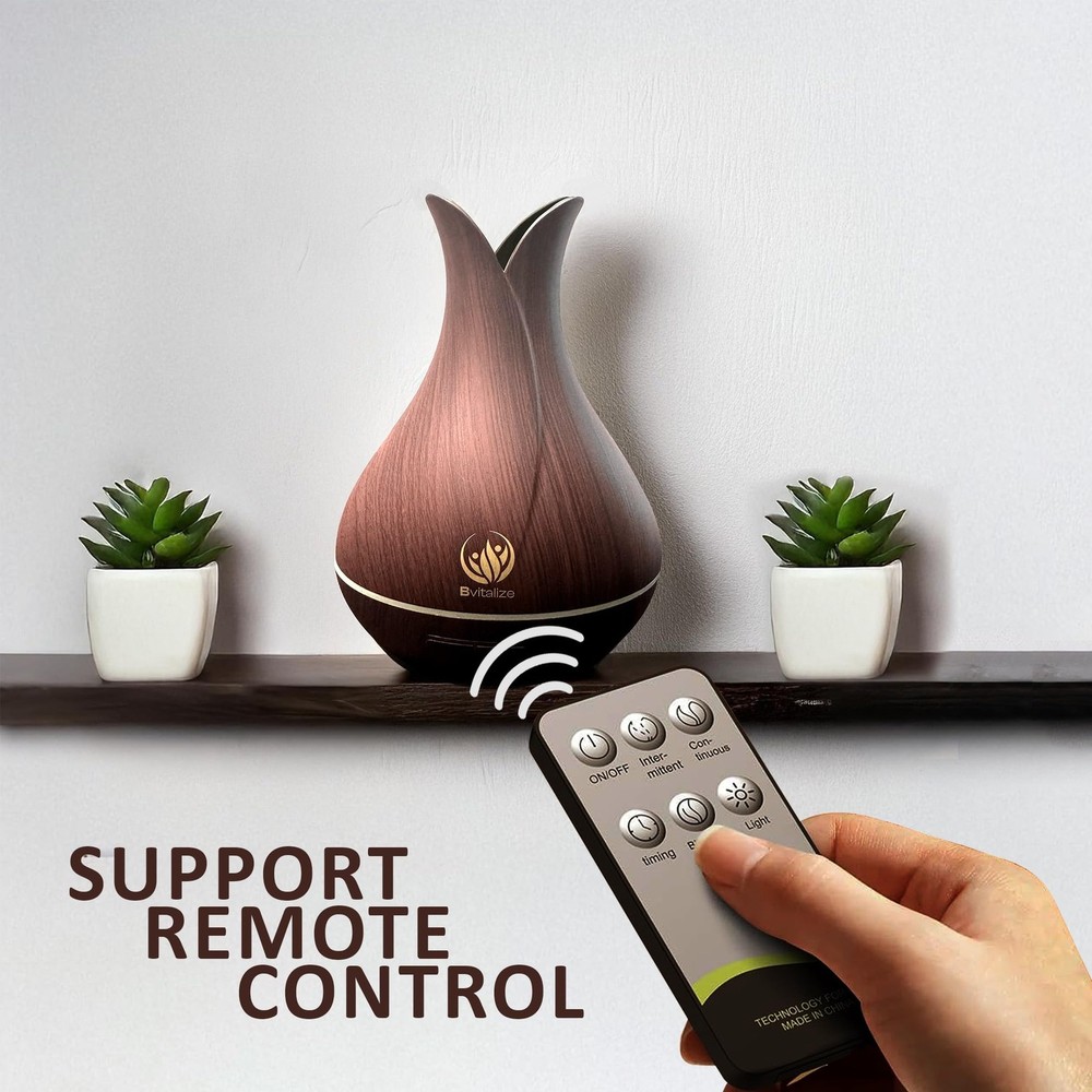 Transform your space with the 400ml Aromatherapy Diffuser, designed to bring soothing, therapeutic scents into your home or office. Whether you want to create a tranquil atmosphere in your large room or need a scent diffuser oil to freshen up your office diffuser, this ultrasonic diffuser provides an easy, convenient way to enjoy the benefits of essential oils. The 400ml tank ensures longer-lasting aromatherapy sessions, with up to 8 hours of continuous mist. Choose the strong mist mode for a powerful burst of fragrance or the weak mist setting for a more subtle, long-lasting aroma. The auto shut-off feature adds peace of mind by turning off the diffuser when the water level is low. This large essential oil diffuser includes 3 customizable timer options: 1 hour, 3 hours, or 6 hours. Set it to run continuously or for a specific period, and enjoy the fragrance of your favorite essential oils while conserving water and oils. The 7 color LED lights cycle through a beautiful spectrum or can be fixed on a single color of your choice, providing the perfect touch to your home, office, or bedroom. Whether you're working, meditating, or winding down, this smart diffuser adds a relaxing atmosphere with its calming glow. Crafted from durable, high-quality PP and ABS materials, this BPA-free wood diffuser is built to last. The cute diffuser design complements any home or office, providing both aesthetic appeal and therapeutic benefits. Charming Large Capacity: This cute diffuser features a 400ml tank, ideal for diffusing soothing scents across large rooms such as your living room, bedroom, or office. Enjoy up to 8 hours of continuous aromatherapy with fewer refills, filling the space with your favorite fragrance oils Adjustable Mist Output: Customize your aroma experience with two mist modes. The strong mist option quickly fills the room with vibrant fragrance, while the weak mist provides a subtler scent for long-lasting, peaceful ambiance. Ultrasonic technology ensures whisper-quiet operation for uninterrupted relaxation Versatile Timer Settings: Choose from 3 convenient timer options: 1 hour, 3 hours, or 6 hours. Whether you want continuous mist or a set runtime, this aroma diffuser allows you to enjoy the perfect amount of scent while conserving water and oils. It also includes an auto shut-off feature for added safety when the water runs out 7 Color LED Lights for a Calming Ambiance: Cycle through 7 soothing LED colors or fix on your favorite shade to create the perfect setting. The gentle, color-changing lights provide a peaceful, relaxing atmosphere for any home or office space without being too bright Premium Quality Wood Grain Design: Crafted with durable PP and ABS, this BPA-free wood diffuser is both stylish and functional. Its modern wood grain finish adds a natural touch to your decor, making it an attractive piece for any room. Plus, the smoke diffuser design complements both modern and traditional interiors, enhancing your diffuser for home experience