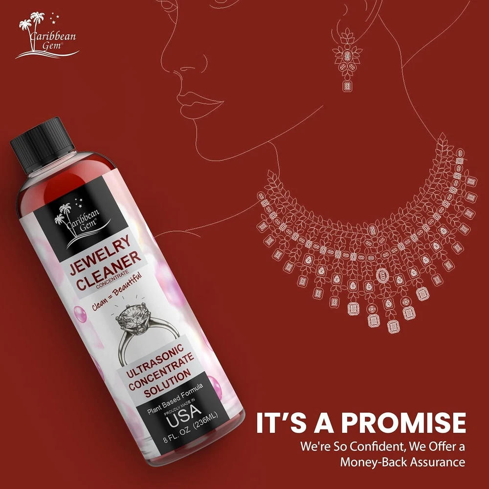 ๐ ๐๐๐ฃ๐ฎ๐ฏ๐๐ง๐๐ญ๐ข๐ง๐ ๐๐ฉ๐ ๐๐จ๐ซ ๐๐๐ฐ๐๐ฅ๐ซ๐ข๐๐ฌ - Rediscover the brilliance of your treasures with our USA-made ultrasonic jewelry cleaner liquid! With two 8 oz bottle, it delivers up to 37 machine refills for a long-lasting and cost-effective solution ๐๐๐ญ ๐๐๐๐๐ฒ ๐๐จ๐ซ ๐๐ก๐ข๐ง๐ข๐ง๐ ๐๐ซ๐ข๐ฅ๐ฅ๐ข๐๐ง๐๐ - Bathe your treasures in blissful luxury! From glittering gems to dazzling watches, our non-abrasive plant-based jewelry cleaning solution for ultrasonic cleaner is excellent for all your lovely jewels. ๐๐๐๐ข๐๐ข๐๐ง๐ญ ๐๐ฉ๐๐ซ๐ค๐ฅ๐๐ฌ - Simply pour one cap full of our ultrasonic cleaning solution per 20 ounces of water to turn your ultrasonic machine into a basin of sparkling elixir. One basin last for multiple cleanings. For non-machine use, a soft brush works wonders. ๐ ๐๐๐ซ๐ข๐๐๐๐๐ง ๐๐จ๐ฎ๐๐ก - Our ultrasonic jewelry cleaning solution is infused with Caribbean essence to bring you a touch of exotic delight. The notes of banana and coconut oil create a hygienic oasis, removing dirt and preventing the growth of harmful microorganisms. ๐๐ข๐ฆ๐ฉ๐ฅ๐ ๐๐ญ๐๐ฉ๐ฌ ๐ญ๐จ ๐๐ฎ๐ฌ๐ญ๐ซ๐จ๐ฎ๐ฌ ๐๐ก๐ข๐ง๐๐ฌ - The jewelry & ring cleaner solution comes with crystal-clear instructions, ensuring you can easily and efficiently apply our solution. It might not be magic, but it sure cleans like it!