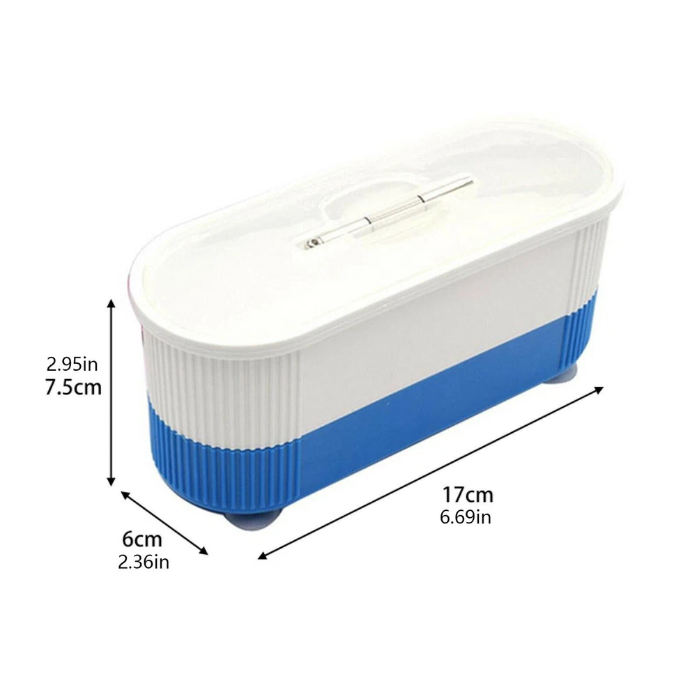Product Description Ultrasonic Jewelry Cleaner Denture Eye Glasses Coin Silver Cleaning Machine Box' Description: The ultrasonic cleaner with ultrasonic wave energy for gentle clean that won't damage your valuables, washing your valuable in a effective cleaning tool. The ultrasonic cleaner can clean jewellery, eyeglasses, watch, rings, coins, dentures, and other small items with water, with common detergent will be better. With 40KHZ ultrasonic frequency and high-power ultrasonic transducer for superior cleaning effect. The ultrasonic cleaner will give you special experience to clean your valuable things. Specifications: Condition: Brand New Material: Plastic Size: 164 x 75mm Color: As picture Cleaning Principle: Ultrasonic Ultrasonic Frequency: 40 kHz Power by: 2 x AAA Batteries( not included) Package Included: 1 x Ultrasonic Cleaner Shipping Returns Contact Us Payment 1. Items sent from US warehouse. 2.Receiving time = Processing time + Shipping time 3. Processing Time: Around 1-2 business Days 4. Shipping Time: 3-5 business day it may have a little delay during some holiday (such as Christmas),any problem ,please feel free to contact 1. 30 days warranty from the purchased date. Please contact us via email before returning the defective item. 2.Our warranty does not extended to any product that are physically damaged or that are not under normal operating conditions as result of misuse or improper installation on the buyer/user's part. 3.Return items should include the original packaging and all accessories. buyers MUST contact us for the returning address. 4.In all cases, buyers pay shipping fees at their own cost to return products for exchange or refund. We will be responsible for the postage of replacements. Refund will be made upon receipt of the returned item. Pls contact us if you have any problems,we will try our best to solve for you We accept all verified payment from eBay. Shipping 1. Items sent from US warehouse. 2.Receiving time = Processing time + Shipping time 3. Processing Time: Around 1-2 business Days 4. Shipping Time: 3-5 business day it may have a little delay during some holiday (such as Christmas),any problem ,please feel free to contact Returns 1. 30 days warranty from the purchased date. Please contact us via email before returning the defective item. 2.Our warranty does not extended to any product that are physically damaged or that are not under normal operating conditions as result of misuse or improper installation on the buyer/user's part. 3.Return items should include the original packaging and all accessories. buyers MUST contact us for the returning address. 4.In all cases, buyers pay shipping fees at their own cost to return products for exchange or refund. We will be responsible for the postage of replacements. Refund will be made upon receipt of the returned item. Contact Us Pls contact us if you have any problems,we will try our best to solve for you Payment We accept all verified payment from eBay. You may also like TV Remote Control Controller For Bose Solo 5 TV Soundbar System 535 AUX1 CM525 18.99 USD Watch Crystal Glass Sapphire Bubble Magnifier Calendar Lens Small Date Window 10.66 USD Storage Case Travel Carrying Bag For Bose SoundLink 3 SoundLink III Speaker 20.0 USD Repair LCD Screen Hinge Flex Cable For Canon PowerShot G7X Mark II G7 X II G7X2 12.75 USD 4Pcs/Set Tires & Wheels Rims For Tamiya TT01 TT02 XV01 HPS HPI 1/10 RC Car aa 22.77 USD N9 MINI GSM AUDIO LISTENING BUG 2x SENSITIVE MICROPHONE Two-Way Ear Bug Device 18.99 USD powered by