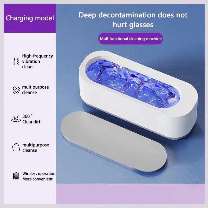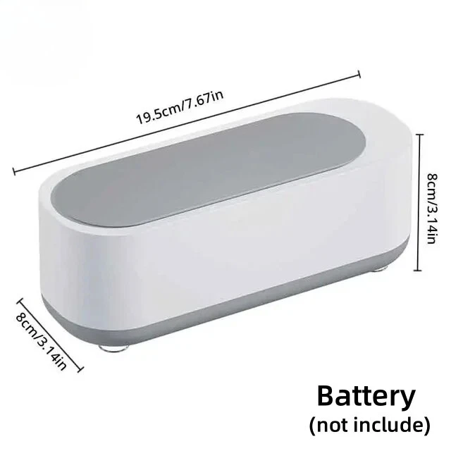 Ultrasonic Cleaning Machine 45KHz High Frequency Multifunctional Vibration Cleaner USB Charge Jewelry Glass Ring Cleaner Specification: Material: PP Rated voltage: 12V rated Power: 5W color: White Weight: 0.193 Size: 190x72x6 8mm/7.2x2.8x2.6" Power supply: 2 AAA dry batteries (not included) Suitable for cleaning glasses, jewelry, makeup brushes, toys, razors, toothbrushes, nail clippers, combs, etc. Features: 1. Multifunctional jewellery washer: can be used to clean jewellery, rings, glasses, dentures, watches, coins, etc. 2. Ultrasonic cleaning: ‘cavitation effect’, quickly cleans stains. 3. One-key start: 360° purification, deep cleans dirt from the crevice. 4. How to use: Add a suitable amount of water, one key start cleaning, efficient cleaning, easy to remove stains 5. Advanced cleaning method: Stop using traditional liquid cleaners and brushes, which can damage your valuables and hands. Ultrasonic cleaners are the perfect replacement for traditional liquid cleaners. It makes cleaning messes easier and safer, you can clean your things anytime, anywhere, and the ultrasonic won't scratch or damage your valuables. Package includes: 1.USB models: 1 x Ultrasonic Makeup Tools Jewellery Contact Lens Braces Watch Washing Machine 1 x USB cable 2.Battery models: 1 x Ultrasonic Makeup Tools Jewellery Contact Lens Braces Watch Washer (battery not included)