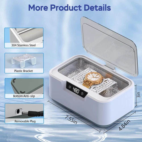 Ultrasonic Jewelry Cleaner Machine: Ring Cleaner Ultrasonic, 48Khz Sonic Cleaner for Necklaces, Eyeglasses, Watch Strap, Dentures - Digital Timer, 4 Time Modes, 304 Stainless Steel, 13.5oz Product Features Powerful Cleaning Effect: The Klivvio jewelry cleaner ultrasonic machine uses 48,000Hz high-frequency sound waves to create millions of microscopic bubbles, the sonic cleaner providing the 360-degree all-round deep clean that forces out dirt and grime adhering to any surface (Note: Glasses/sunglasses with scratches or cracks in the coating are not suitable for ultrasonic cleaning) Multi-Purpose Jewelry Cleaner Machine:The ultra sonic cleaning machine only requires tap water to clean dirty jewelry within minutes, does not remove tarnish.The Klivvio ring cleaner ultrasonic is suitable for a wide range of items, including jewelry, glasses, straps, dentures, retainers, coins, and other items, meet all your daily cleaning needs(Works well with cleaning solutions or detergent) 4 Digital Timing Modes: The sonic jewelry cleaner machine touch button enables super easy and smooth operation, choose from 4 presets (180, 360, 480, 600 seconds) with auto shut off, the digital display can easily read the status of your cleaning cycle.The preset cycles of 480s and 600s with degas mode, degassing can be achieved by intermittent work, improving cleaning efficiency Capacity and Portability: This Klivvio ultrasonic glasses cleaner is made of a 400ml capacity 304 stainless steel tank and ABS plastic, ensures that there's enough room to clean various items at once, saving you time and efforts.The best ultrasonic jewelry cleaner fits well on a countertop, bathroom counter and packs up easily for storage Say Goodbye to Annoying Noise: The bottom is equipped with four non-slip rubber pads, making it easy to stabilize the Klivvio ultrasonic cleaner machine, effectively reducing noise.Its low-noise design and automatic power-off feature ensure a comfortable user experience, allowing you to use this ultrasonic retainer cleaner even while you sleep Compact Design: The Klivvio ultrasonic jewelry cleaner size is 7.55"L x 4.84"W x 3"H, its lightweight and space-saving construction allows the device to be conveniently stored in backpacks or luggage Warm Tip: For optimal cleaning performance, adding appropriate cleaning agent solution can achieve better cleaning results. For daily dust removal cleaning, use mode 1(180s) or mode 2(360s) for 1-2 cycle. For items with heavy stains, use mode 3(480s) or mode 4(600s) for 2-3 cycles Shipping: Shipping is complimentary within the lower 48 US States. We Do Not Ship to PO/APO Boxes, HI or Alaska We Do Not Ship Outside of the Continental US All items ship within 24-72 hours of Payment For large items that require Freight shipping a valid phone number is required to call and schedule your delivery Terms of Sale and Feedback: Feedback is extremely important to us and eBay If you are satisfied with our transaction, please take a moment to leave Positive Feedback. YOUR Satisfaction is our #1 Priority! If there are any issues, PLEASE contact us BEFORE leaving a neutral or negative rating so that we may resolve any concerns. We PROMISE we can make you happy if you give us a fair chance. Returns / Concerns: All items qualify for returns within 14 - 30 days of receipt. Buyer is responsible for return shipping on any item that is not damaged Please be sure this is an item you want before making your purchase. Customer Satisfaction is our TOP priority! All items are IN STOCK at time of listing. Inventory on eBay changes constantly and it is impossible to maintain a perfectly accurate count of all items. Please do not penalize us if we have to issue you a refund! Thank You For Your Business!