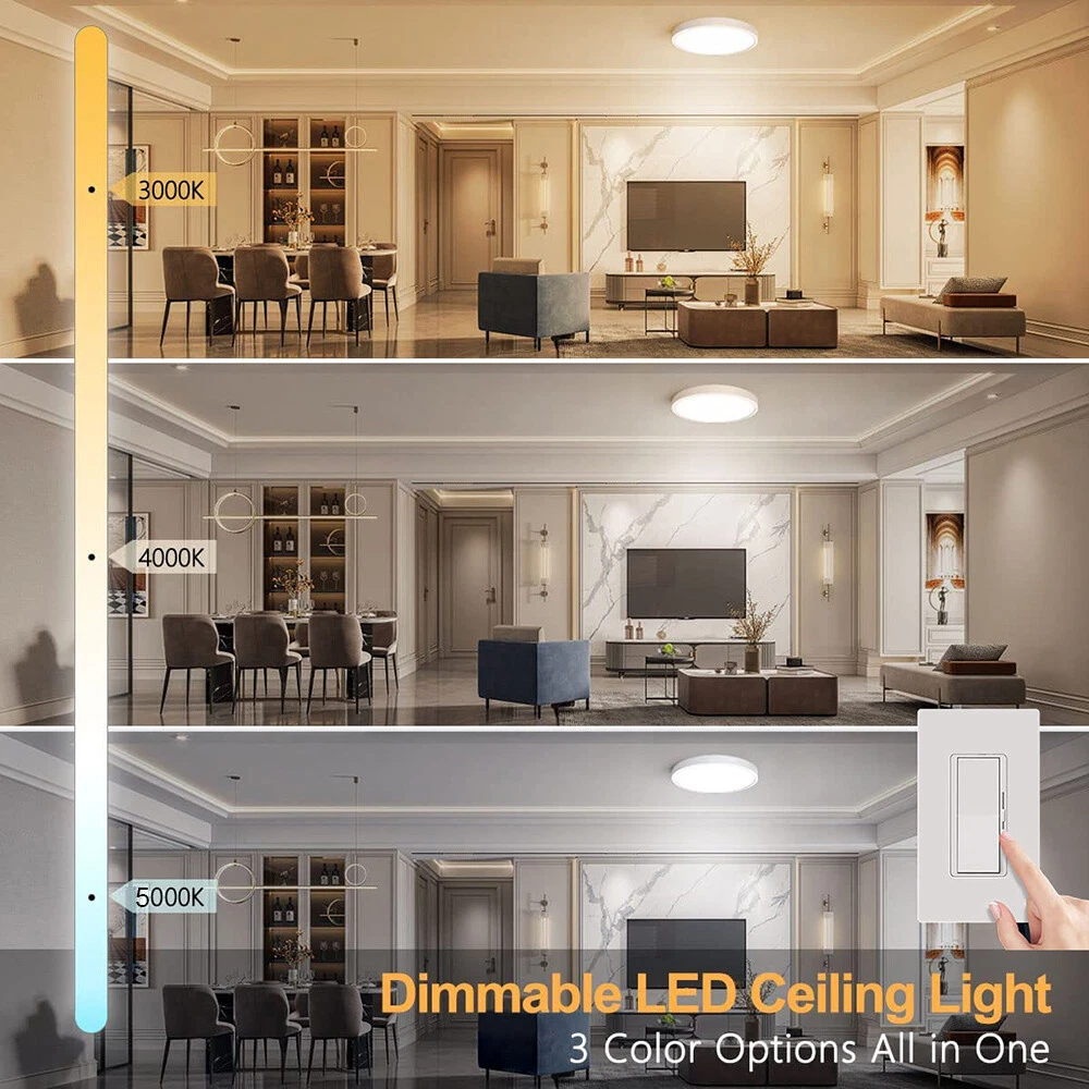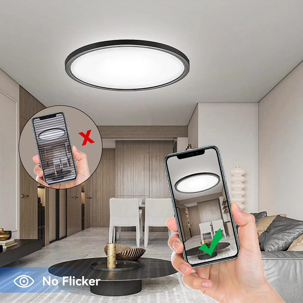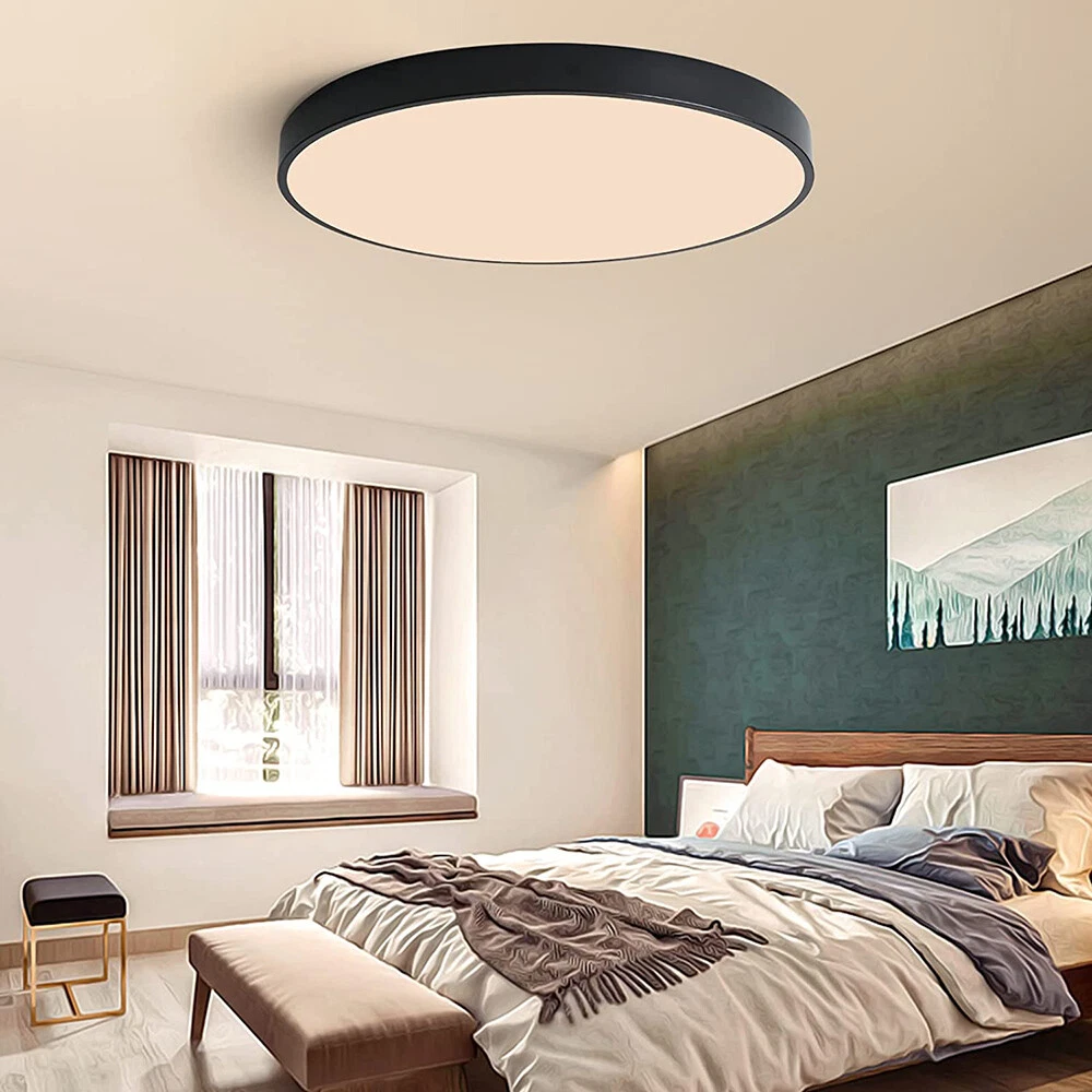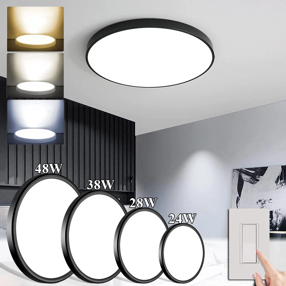 You may also like Retro Ceiling Lamp Fixture Industrial Mental Cage Pendant Lights Cafe Bar Decor 35.19 USD Free shipping Boho Rattan Ceiling Light Chandelier Woven E27 Base 3Bulb Vintage Fixture Wicker 165.59 USD Free shipping Product Description LED Flush Mount Ceiling Light Super Slim 23/30/40/50cm 24W/28W/38W/48W LED Ceiling Light 3 Color Temperature in One 3000K/4000K/6000K Adjustable Ceiling Light fixture for Bedroom Kitchen Dining Room Description: Features: *【High Performance】Our ceiling lamps are integrated LEDs, no bulbs are needed. Four sizes to choose, 9.05inch, 11.8inch, 15.7inch, and 19.6inch, suitable for all size needs. Features AC85-265V 2500lm/3200lm/4200lm/5200 lumens brightness by using only 24W/28W/38W/48W. Energy Savings of up to 90%, for example, the 28W lamp is equivalent to six 40W traditional bulbs(240W). Saving a lot of money on your electricity bills and reducing re-lamp frequency. *【3 Color Temperatures】This flat ceiling flush light has 3 color temperatures, 3000k, 4000k, and 5000k, it is controlled directly by a wall switch, 3 presses for a cycle, no need remote control or app, and is simple to work and operate. Much more durable and Longer lifespan of about 30,000hrs. *【Memory function】Powerful memory function automatically retains the last color temperature. First, turn on the color you want, then turn it off for more than 10 seconds. Turn on the light again you will get back the last setting light color. *【Soft&Bright Lighting】The flush mount LED ceiling light is equipped with high-efficiency LED beads, saving your electricity bills more than traditional LED light bulbs, and protecting your eyes from the glare of traditional lighting. 28W bright and even Lighting easily illuminates a 6-18 square room. Bring you a warm and comfortable feeling for your bedroom, bathroom, and living room. *【Stylish&Thin Design]】 These LED ceiling lights are only 0.9inch thick, well-sealed, and avoid the little bugs, perfect size, and flat ceiling lights well match the ceiling. Modern simple design meets most decoration styles, modern and elegant. *【Easy to install】Very easy to install, only need 3 steps to install. First, connect the AWG, and then fix the base on the ceiling with 3 screws, finally screw the ceiling lamp in the base, and make sure the metal plate inside the lamp is well rotated and stuck at the rightmost of the base, or the ceiling led light may not light up. *【Wide Application】Simple Design of the LED ceiling light can well suit different decoration styles, like living room, bedroom, kitchen, hallway, bathroom(waterproof IP44, no problem for daily use), etc. Energy-saving LED ceiling lights help you to save your electricity bill, a great choice for your home. Specifications: Color: Black Material: PC Working Voltage: AC85V-265V Color Temperature: 3000K Warm White/4500K Natural White/5000K White Power: 24W, 28W, 38W, 48W Diameter: 9.05inch, 11.8inch, 15.7inch, and 19.6inch Thickness: 0.9inch Brightness: 24W: 2500lm, 28W: 3200lm, 38W: 4200lm, 48W: 5200lm Working Temperature: -20℃-60℃ Package includes: 1X LED Flush Mount Ceiling Light Payment Shipping Returns Contact Us Paypal. We only ship to confirmed paypal address. Items are generally dispatched within 1~3 business days after payment is cleared. Please make sure your address in Paypal is matched with your shipping address before you pay. We offer a 30 days return guarantee. If you are not satisfied with the item, you can return it within 30 days after item received. If items have any problem due to quality, please contact us for refund, exchange or a replacement. Please contact us first before item returned. Customer Service from 9:00 am - 6:00 pm on Business Days. Payment Paypal. We only ship to confirmed paypal address. Shipping Items are generally dispatched within 1~3 business days after payment is cleared. Please make sure your address in Paypal is matched with your shipping address before you pay. Returns We offer a 30 days return guarantee. If you are not satisfied with the item, you can return it within 30 days after item received. If items have any problem due to quality, please contact us for refund, exchange or a replacement. Please contact us first before item returned. Contact Us Customer Service from 9:00 am - 6:00 pm on Business Days. powered by