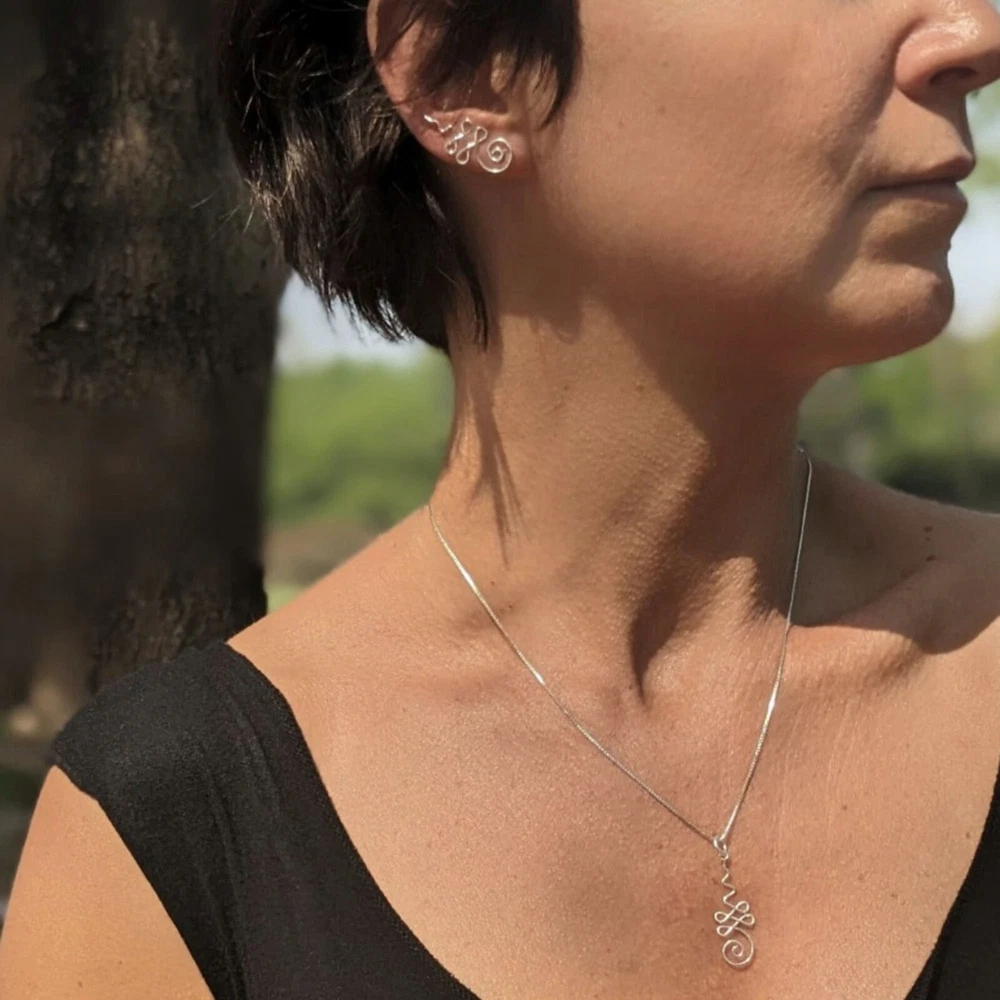 Lotus flower unalome climber earrings in sterling silver. Nickel Free. Gorgeous spirallled unalome symbol ear climbers. They follow the side cartilage of the ear and sweep upwards giving an effective high polished silver spiral twirl which really stands out! The Unalome is both a Buddhist and a Hindu symbol. It represents the path to freedom. Or slightly more down-to-earth, your life's path. Easy to fit and wear, these lightweight Yoga over ear crawlers are a must for any Boho Minimal jewellery collection. Buy Now! Dimensions Height: 2.4 cm Width: 1.2 cm Weight per pair: 1.03 grams SOLD ONLY IN PAIRS! Delivery Information All items dispatched from the UK. Item will be carefully packaged in eco-packaging to safeguard it during delivery. Standard Track48 Shipping with Royal Mail or Yodel included FREE . Tracking number details will be sent after dispatch (which is usually within 1 working day of purchase. Weekends/festivities excluded). Faster shipping options also available for the UK. Worldwide shipping available with Royal Mail Tracked & Signed. Returns accepted within 14 days of receipt. At customers’ expense.