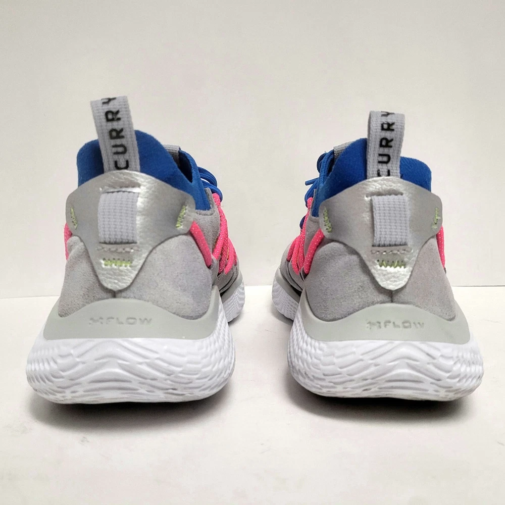 Elevate your activewear game with these Under Armour Curry Flow Cozy basketball shoes. Featuring a lace-up closure, these sneakers are perfect for casual wear, workwear, and athletic activities such as walking, cross-training, and basketball. The multicolor geometric pattern and Steph Curry character design add a touch of style to these comfortable and breathable shoes. Crafted with synthetic upper material, foam insole material, and rubber outsole material, these shoes are built to last. The Under Armour Curry Flow model is a popular choice for athletes and fans alike, and this product line offers a standard shoe width and low-top shoe shaft style. Don't miss out on the chance to own these stylish and versatile sneakers. Condition: pre-owned good condition Size: Men's - 8 Women’s - 9.5
