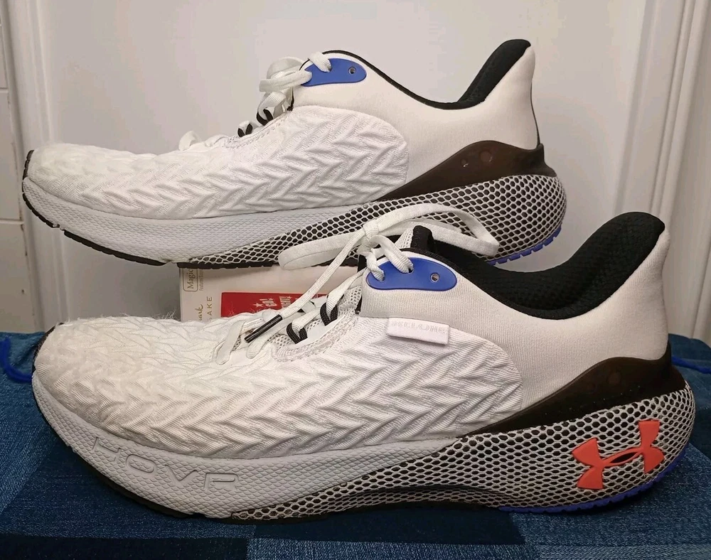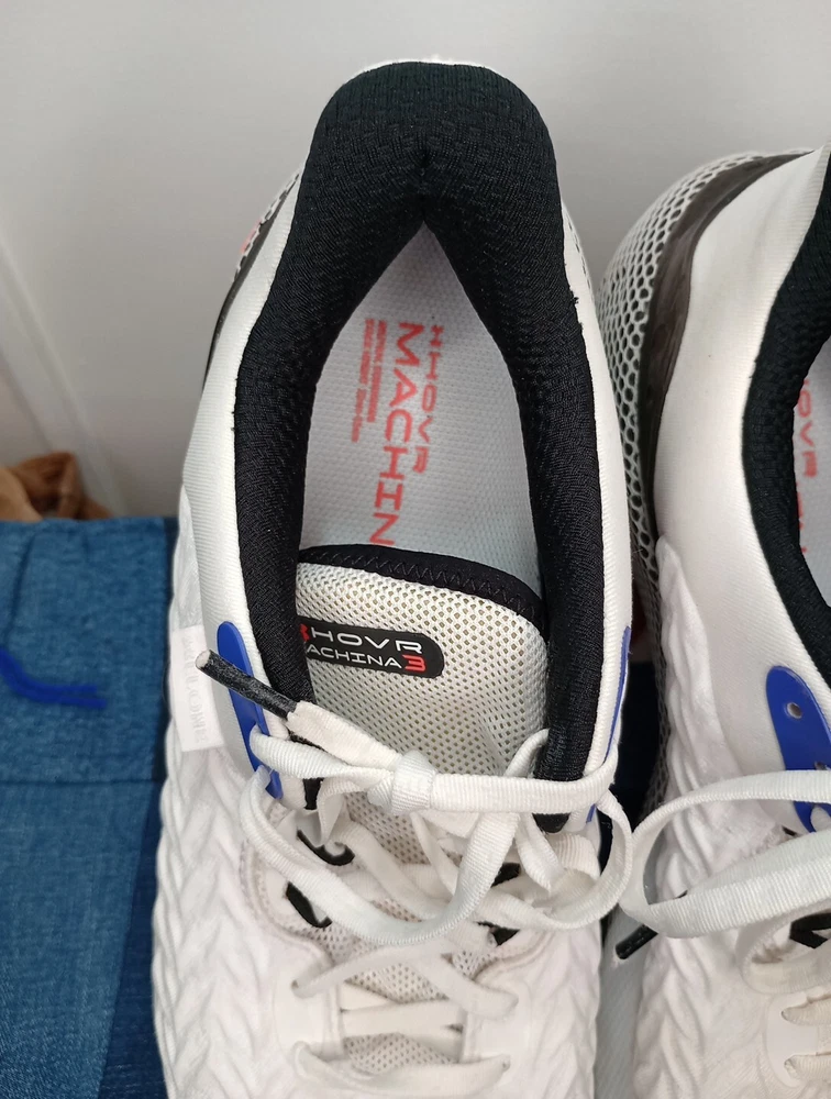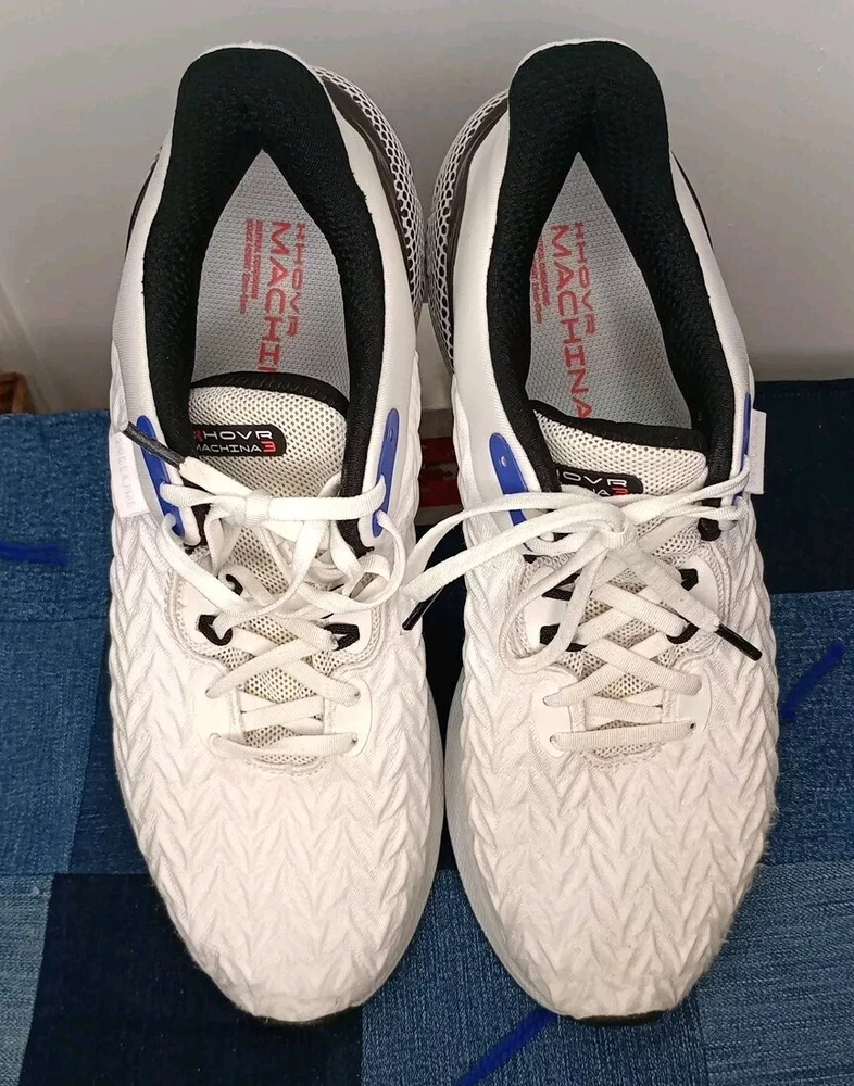 Very clean inside and out. Pilling on front toe of left shoe as shown in photos. Quick and secure shipping. Elevate your running game with these white Under Armour HOVR Machina 3 sneakers. Designed with comfort and breathability in mind, these sneakers feature a lace-up closure and a solid pattern. The rubber outsole and synthetic upper material provide durability and support, making them perfect for running and jogging in any season. These sneakers are customized to fit your feet perfectly, ensuring a comfortable fit for any casual occasion. The HOVR Machina 3 model is perfect for sports enthusiasts who want to stay on top of their game. Get your hands on these sneakers now and take your running to the next level.