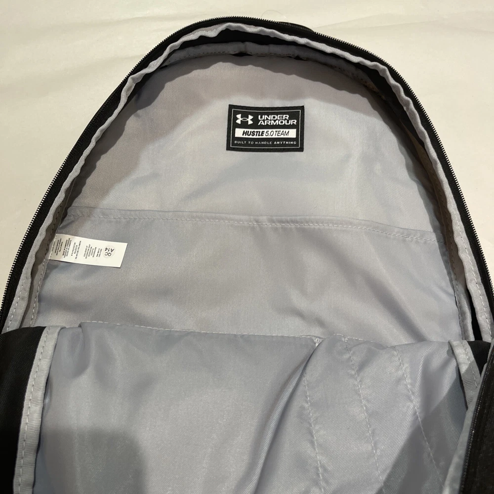 Under Armour Hustle 5.0 Backpack w/Promo SEIKO Black See Pics showing Details UA Storm technology delivers an element-battling, highly water-resistant finish Breathable air-mesh padded back panel & adjustable, HeatGear shoulder straps for total comfort Soft-lined laptop sleeve—holds up to 15" MacBook Pro or similarly sized laptop Water-repellent front valuables pocket to keep your stuff safe Large, gusseted front laundry/shoe pocket placed at bottom of bag Brand New