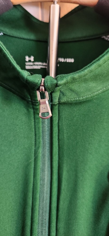 Elevate your athletic wardrobe with the Under Armour Light Jacket, a perfect blend of style and functionality. Crafted for individuals who value both comfort and appearance, this green jersey is designed to cater to the needs of men who prefer a regular fit. The softshell fabric offers a gentle touch while ensuring durability, making it suitable for a variety of activities including running, cycling, and soccer. Details such as the classic fitted sleeves, stand-up collar, and moderate compression level enhance the jacket's practical appeal. With features like breathable fabric, easy care, and lightweight design, it's an ideal choice for gym training, hiking, or even casual outings. The zip closure and a size that accommodates a 31-inch shirt length ensure a secure and comfortable experience for the active individual. 🟨🟨🟨 Keep in mind that if there are any flaws, it will be on the pictures.🟨🟨🟨 ❤️❤️❤️ Thank you for visiting my shop! I’m happy to answer any questions.