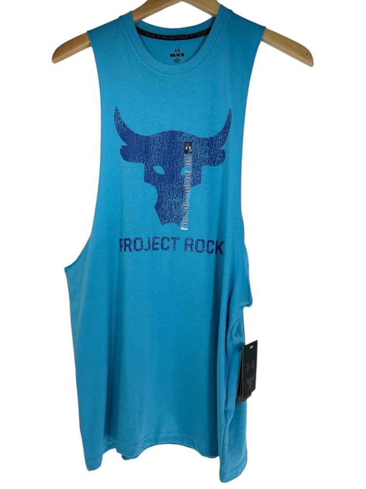 This Under Armour Project Rock tank is a must-have for workouts or casual wear! The two-tone blue design with the bold Brahma bull logo looks sharp, and the moisture-wicking fabric keeps you cool and dry. The relaxed fit is super comfortable, and the quality is top-notch—perfect for hitting the gym or just lounging. Love the lightweight feel and how rare this style is! Highly recommend for any fitness fan.