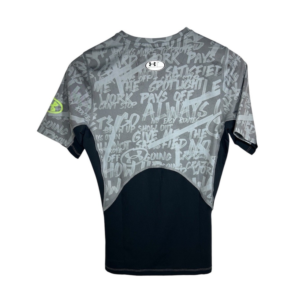 This Under Armour tee is a game-changer! The compression fit keeps everything locked in during intense workouts while the moisture-wicking fabric keeps me cool and dry. The bold colorblock design and motivational print give it a sharp, athletic look. Super lightweight but durable—perfect for lifting, running, or training. Fits true to size with a snug, supportive feel. Absolute must-have for active lifestyles!