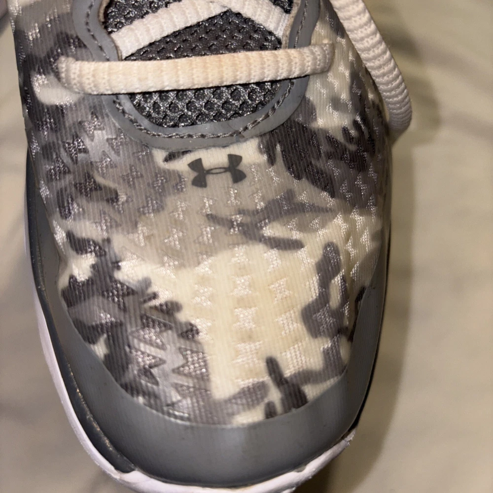 Experience the perfect blend of style and comfort with these Under Armour Men's Grey Spine Sneakers. Designed for the active individual, these sneakers feature a sleek camouflage pattern and the signature Under Armour craftsmanship, ensuring both fashion and functionality. The breathable textiles and rubber outsole provide comfort during any activity, while the standard shoe width and lace-up closure offer a secure fit. With a US Shoe Size of 8.5, these low-top sneakers are tailored for individuals who value versatility in their athletic wear. Ideal for a range of activities, the Under Armour Spine sneakers are a testament to contemporary style meeting athletic performance. Whether you're hitting the gym or exploring the outdoors, these shoes are built to keep up with your lifestyle.