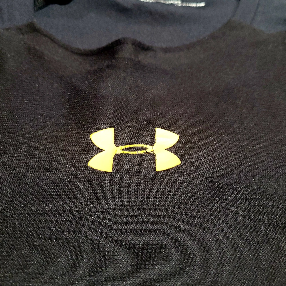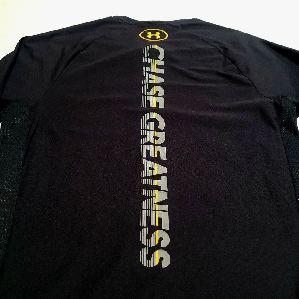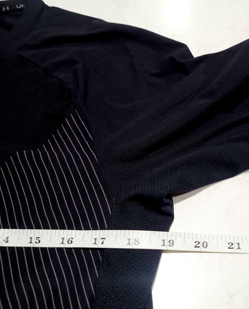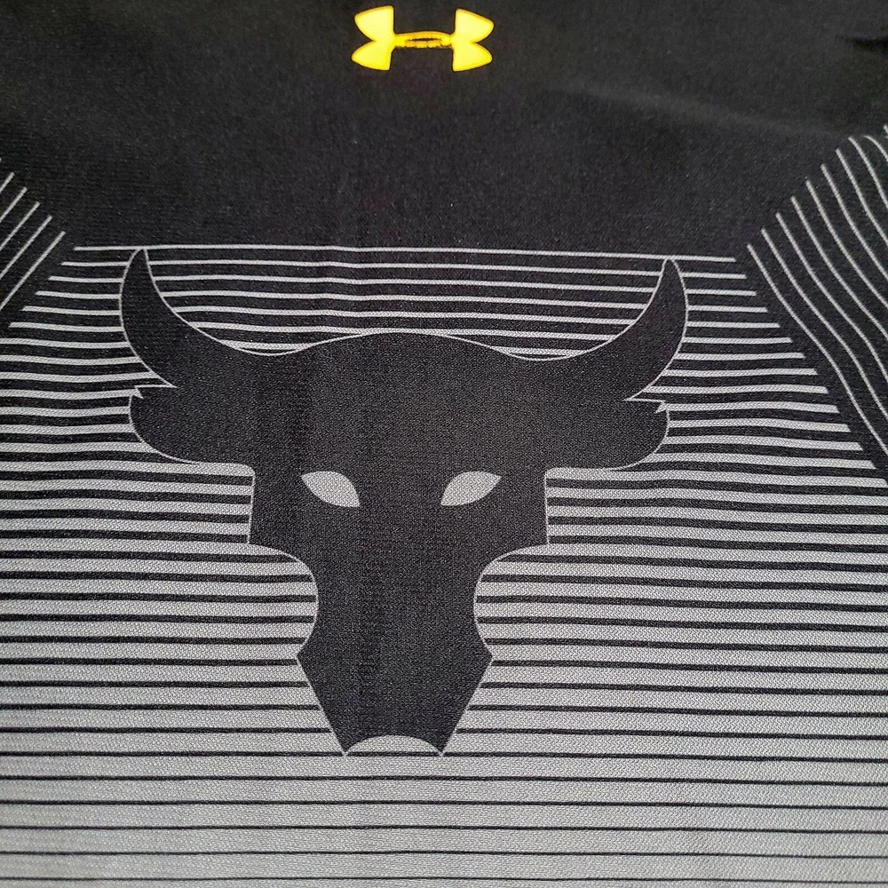 PRE OWNED. IN EXCELLENT CONDITION. PLEASE VIEW ALL PHOTOS ABOVE FOR MEASUREMENTS AND PROOF OF CONDITION. STORED IN A CLIMATE CONTROLLED SMOKE-FREE AND PET-FREE HOME. SHIPS PROMPTLY AND SECURELY. The "Under Armour Project Rock UA 3/4 Sleeve Fitted Shirt" is a men's activewear top in size Medium. It features a crew neck and a pullover style, made of breathable 100% polyester fabric in black. The shirt showcases the logos of "Chase Greatness", "The Rock", and a bull character, embodying a sports theme. With a compression level of firm, this shirt is suitable for gym and training activities, designed for comfort and performance. It is part of the Under Armour Project Rock product line, reflecting a collaboration with Dwayne "The Rock" Johnson.