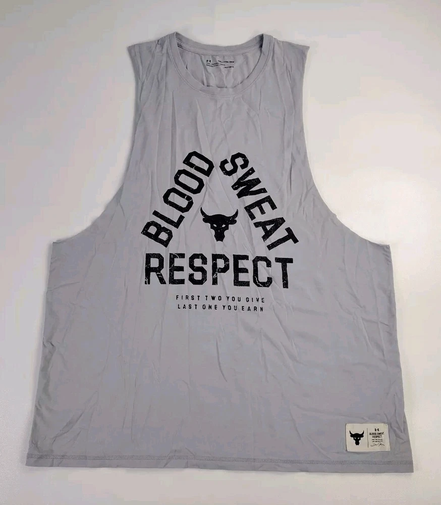 Elevate your workout game with this Under Armour Project Rock ‘Blood Sweat Respect’ Gray Sleeveless Tank Top in size XXL. This pullover-style tank top features a crew neck and is perfect for any activewear occasion. The sleeveless design allows for maximum movement and comfort during any performance or activity, including gym and training, track and field, rugby, tennis, beach, soccer, cross training, basketball, bodybuilding, hiking, and running and jogging. The tank top is made with high-quality materials and boasts a stylish gray color with the Under Armour logo as an accent. This activewear top is part of the Under Armour Project Rock product line and is a must-have for any fitness enthusiast. Get ready to tackle any workout with this versatile and comfortable tank top.